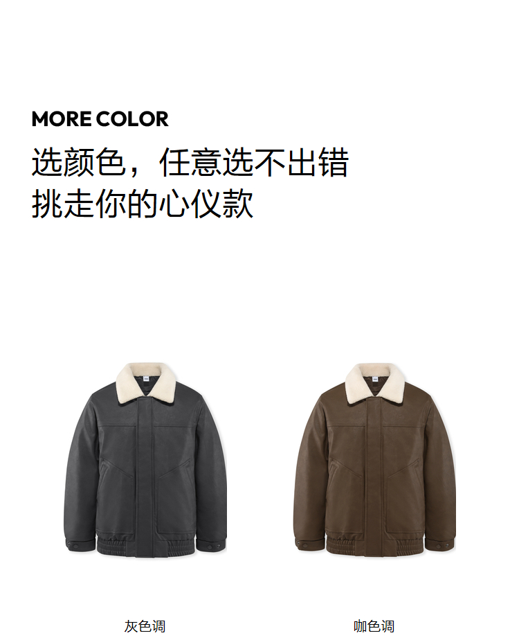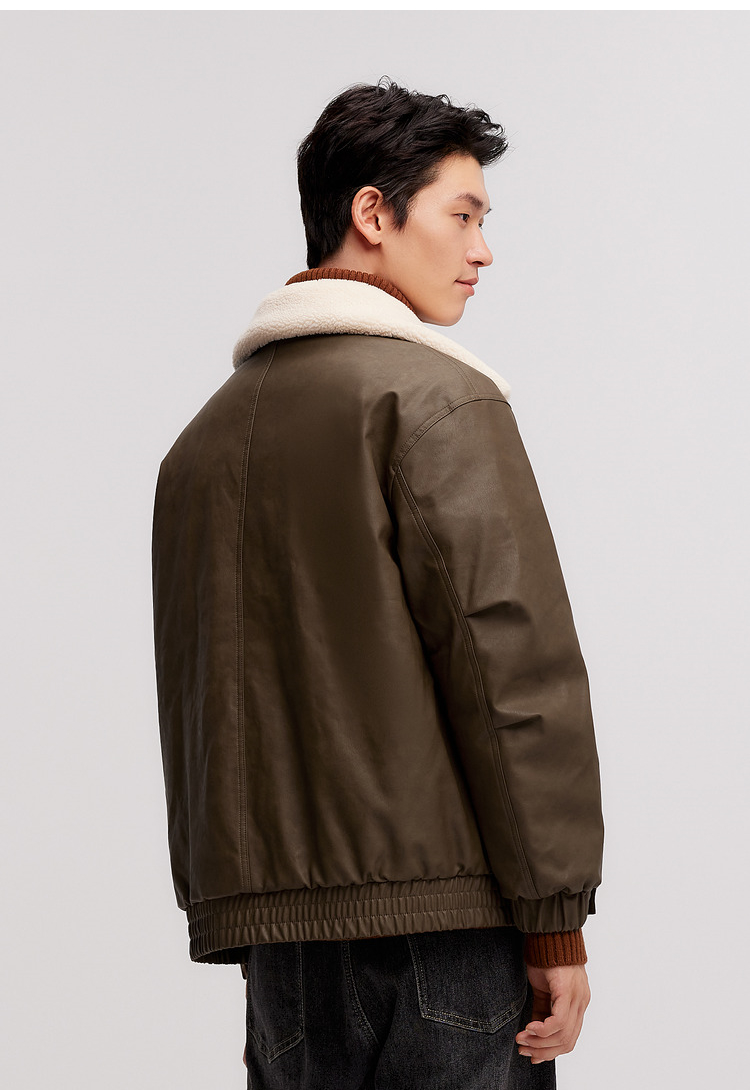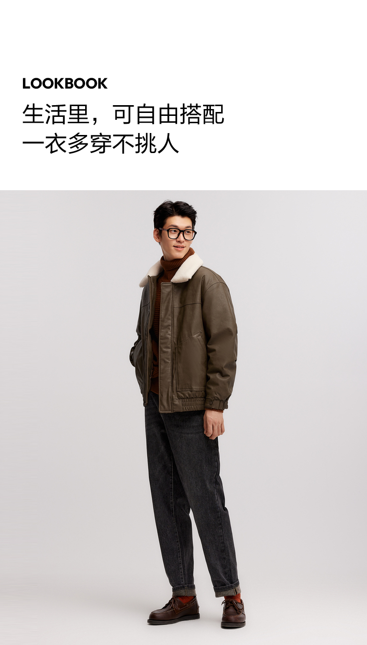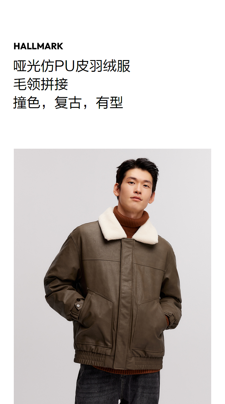 森马羽绒服男冬季新款复古仿皮衣薄款短夹克撞色拼接外套毛领