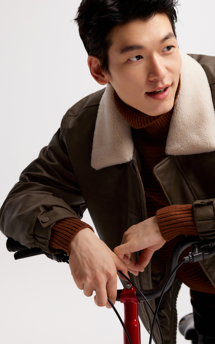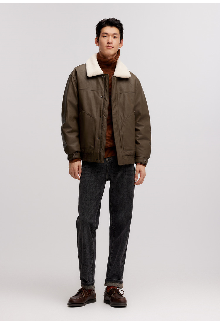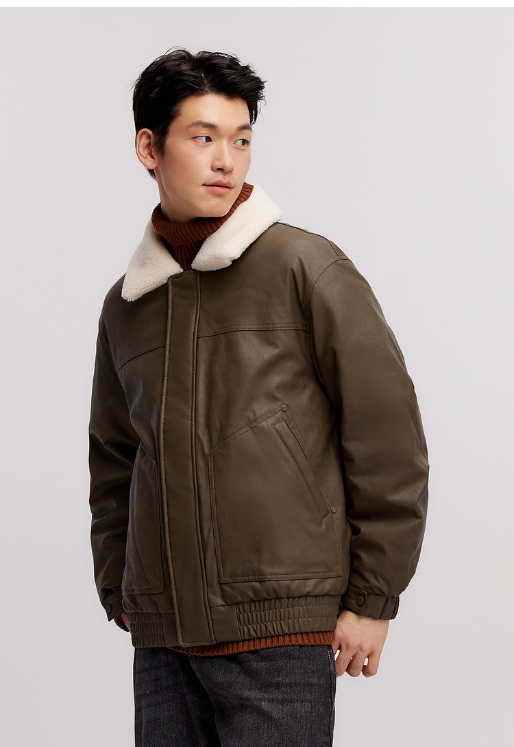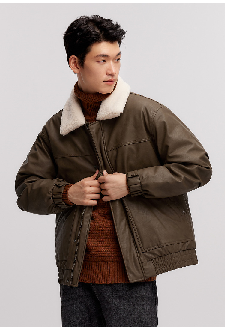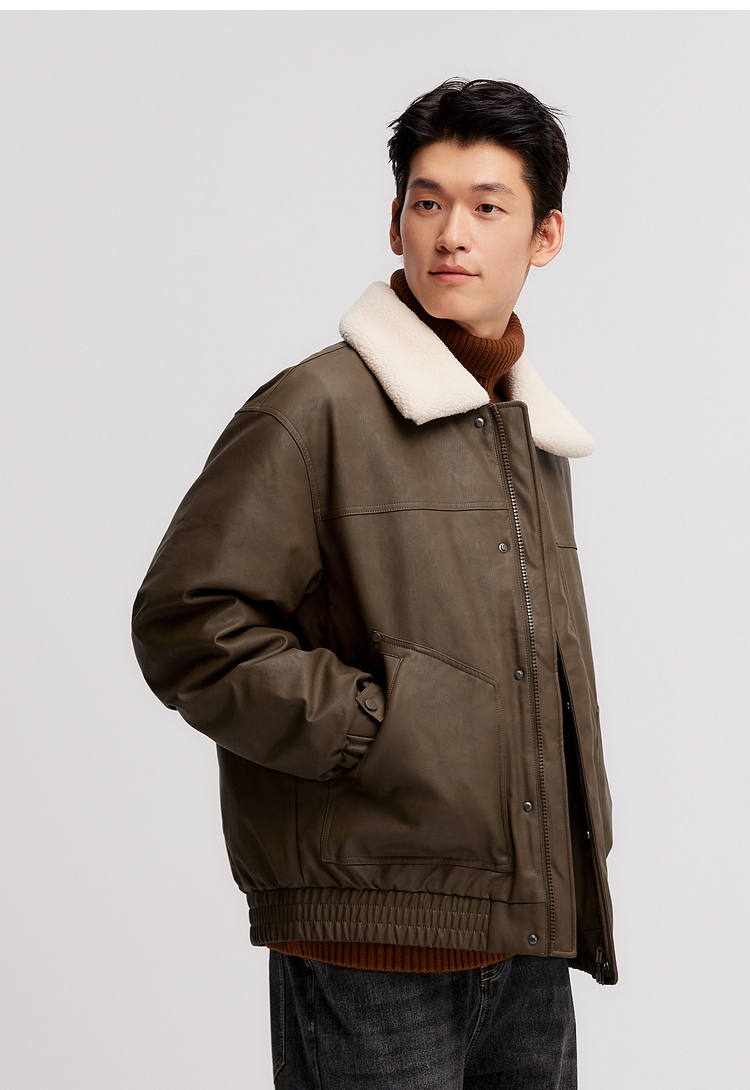 森马羽绒服男冬季新款复古仿皮衣薄款短夹克撞色拼接外套毛领