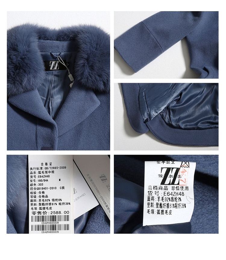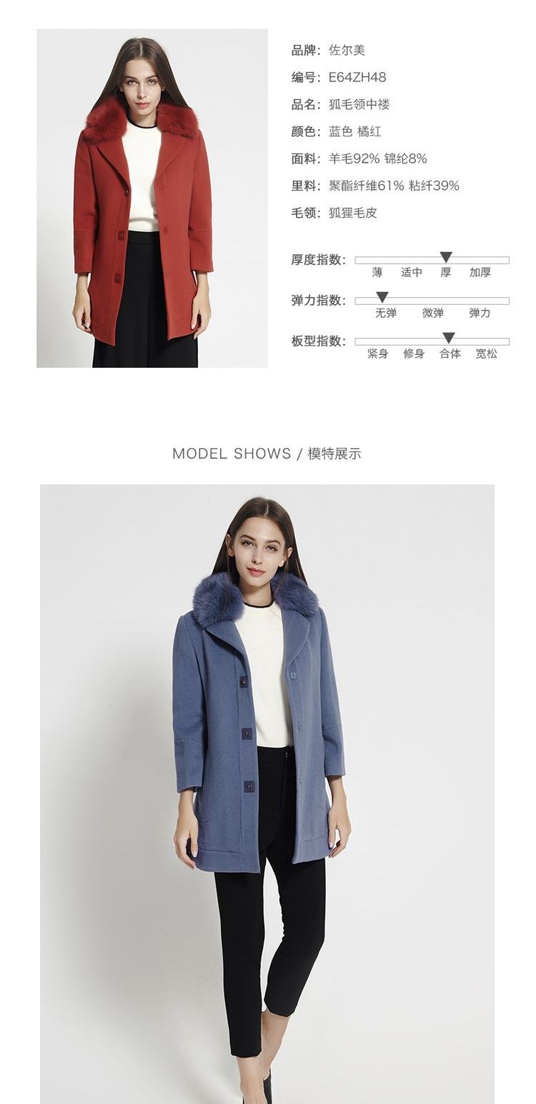 佐尔美秋冬新品羊毛大衣毛领中长款呢外套两色可选E64ZH48