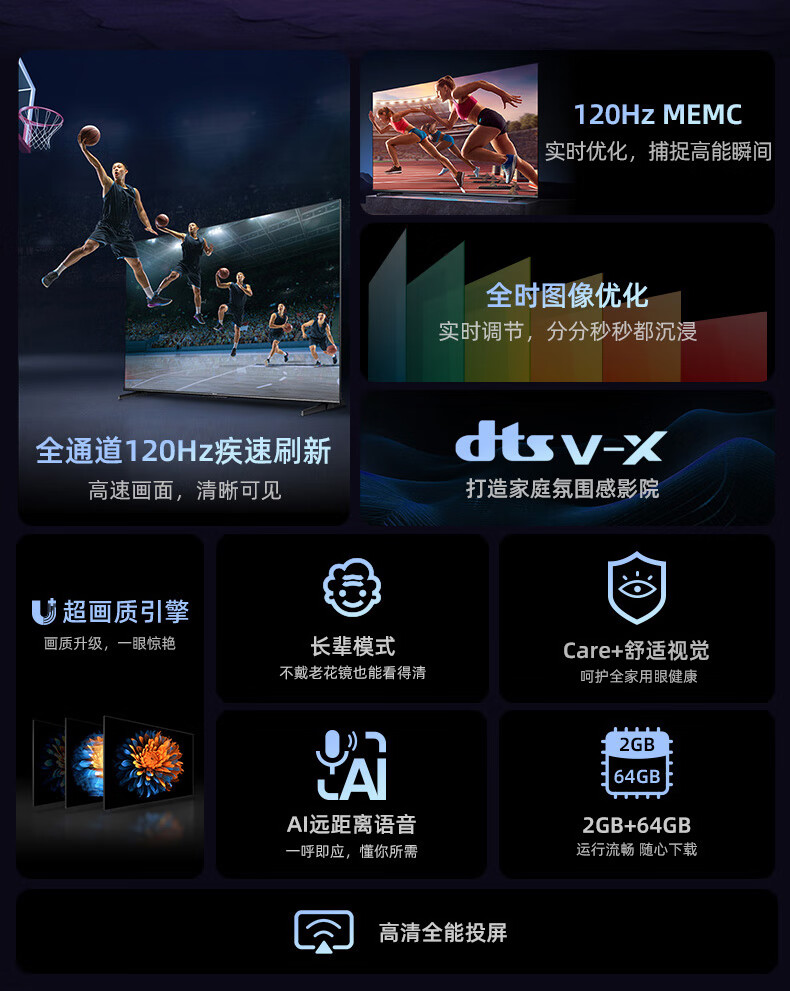 海信电视 75英寸 120Hz疾速高刷 2+64GB 液晶巨幕 远程语音 大屏游戏电视 75D3ND