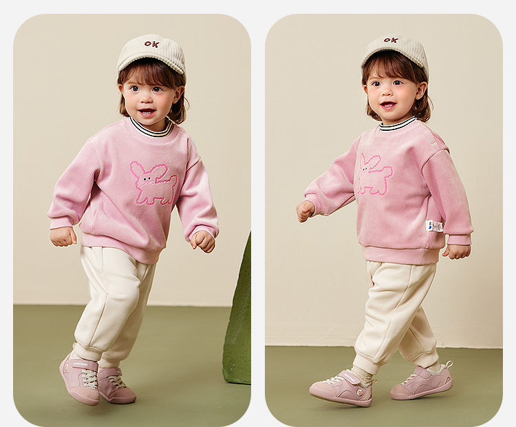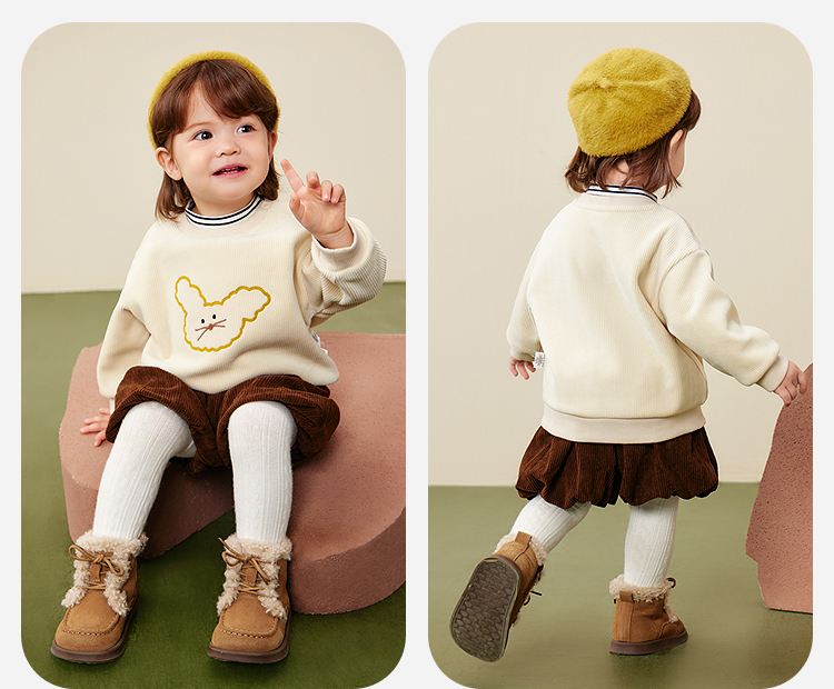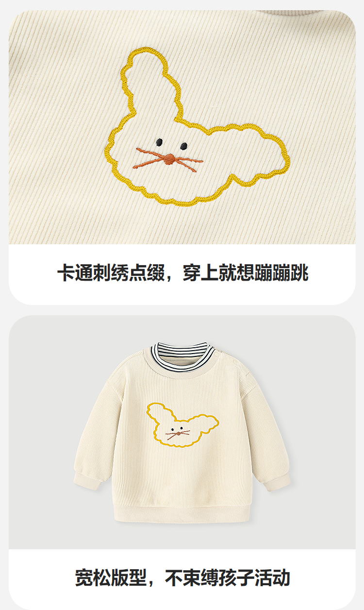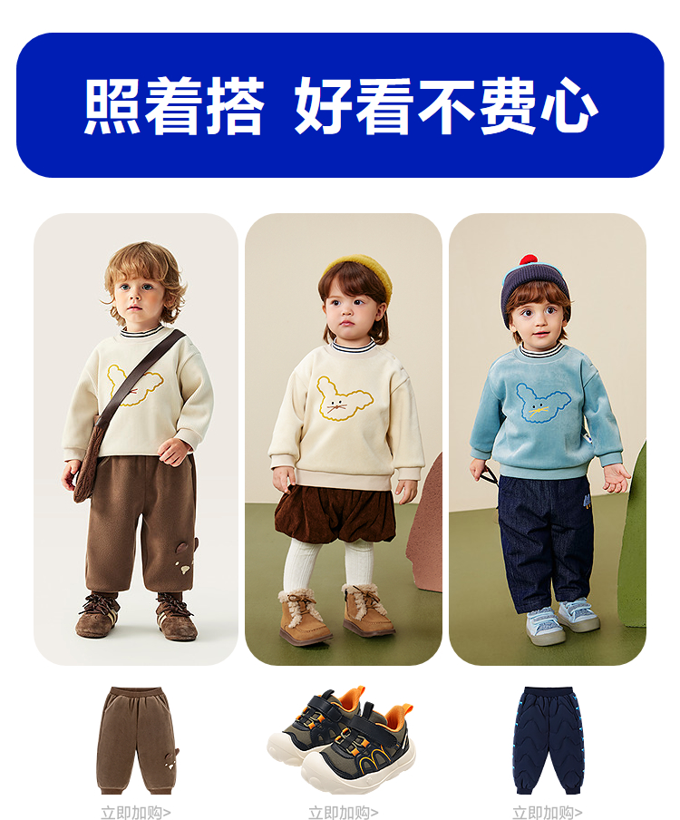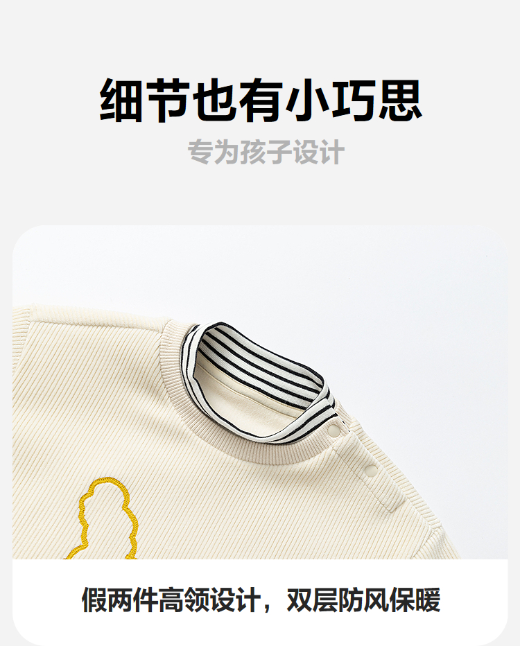 迷你巴拉男女童宝宝软卫衣2025冬保暖内里加绒假两件双层高领上衣