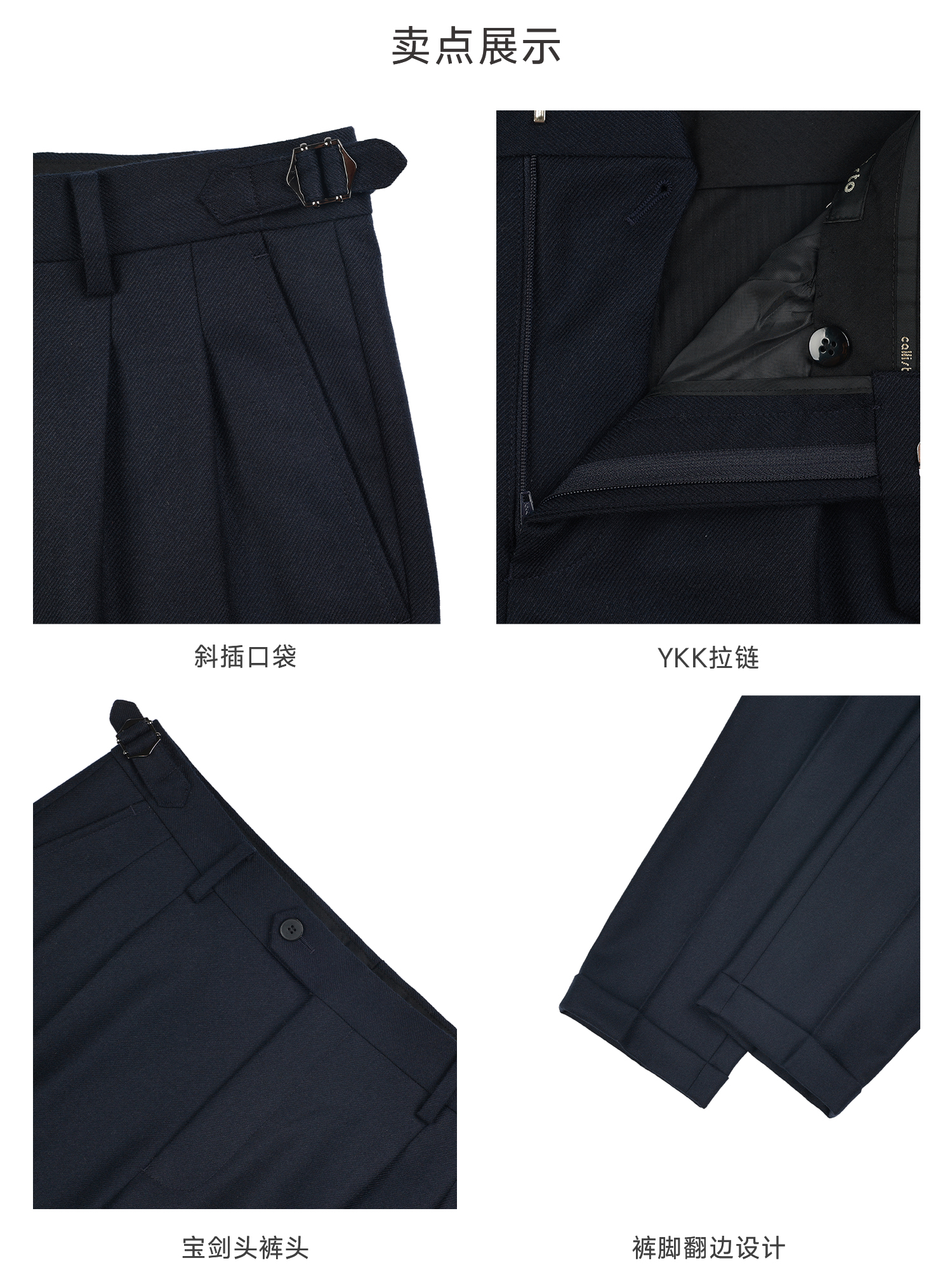 callisto藏青色绵羊毛西裤