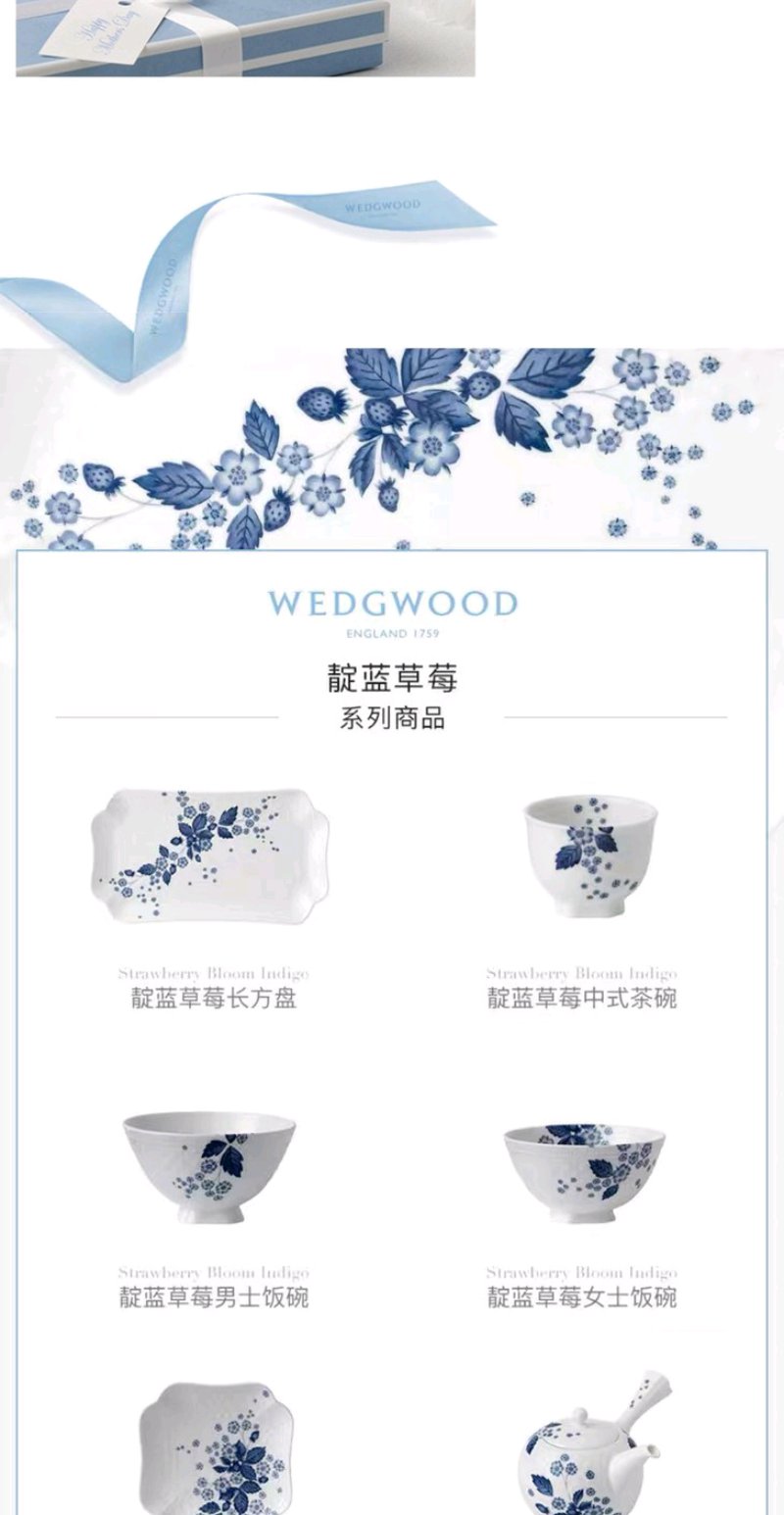 WEDGWOOD玮致活靛蓝草莓女士饭碗家用骨瓷碗单个瓷碗小饭碗5C109202237