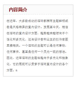 | 适读人群 :建筑师,室内设计师,设计专业人士 目前图书市场上从主题设计方面研究酒吧设计的图书非常罕见,有关以上学科实际探索的选题更是稀缺。因此本选题的出现将填补市场相关领域的空白,将有很好的市场前景。n |