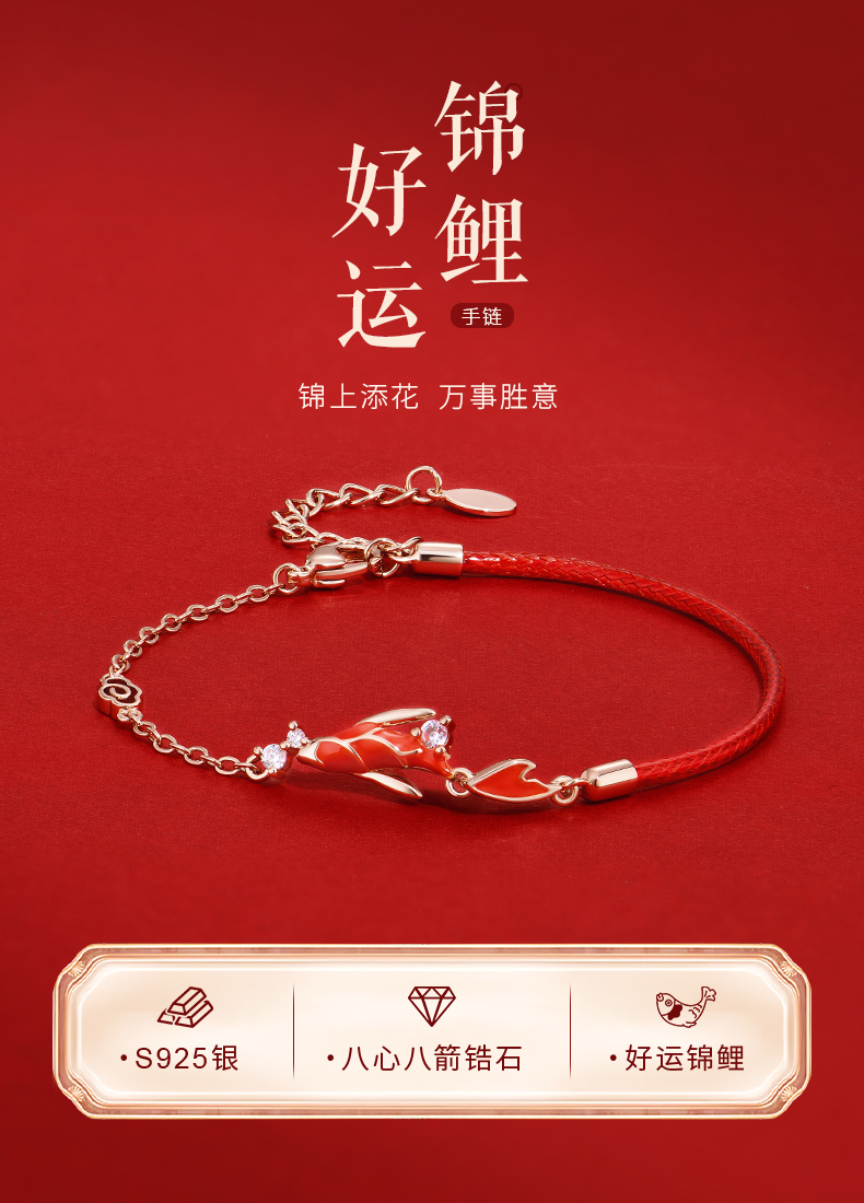 KADER/卡蒂罗 好运锦鲤手链 国风设计 S925 好运吉祥手绳简约大方 女款生日礼物