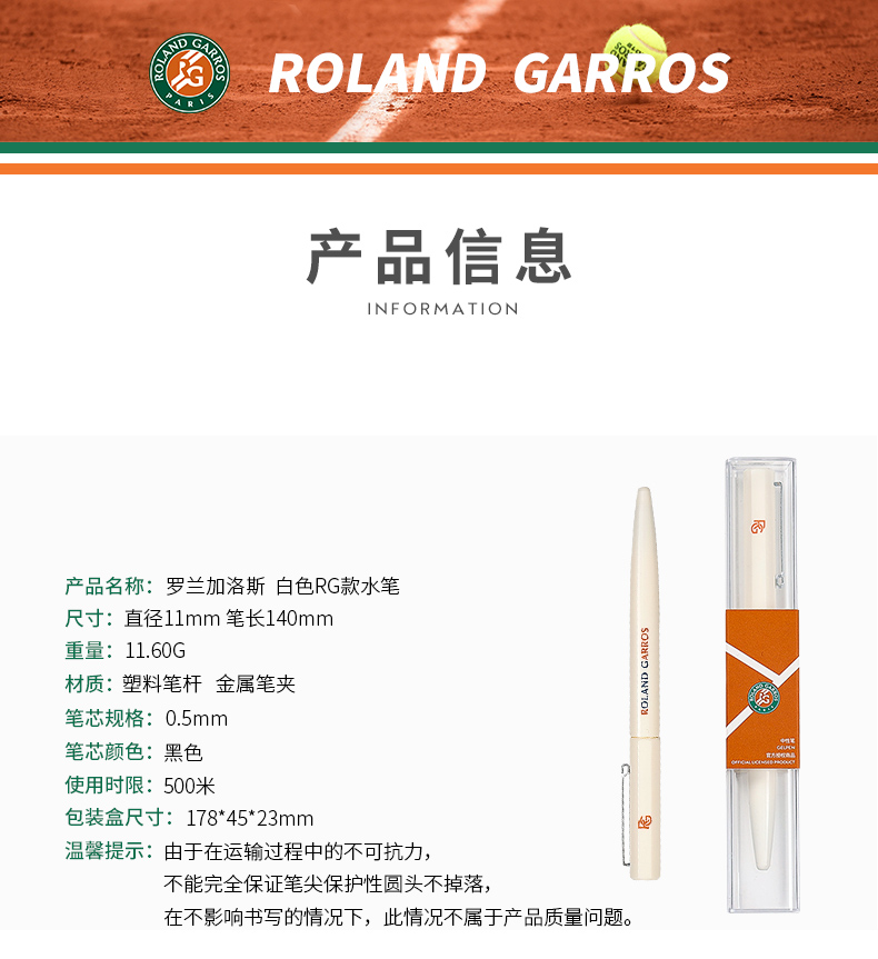 罗兰加洛斯法网官方正品Roland Garros纪念水笔RG印花笔