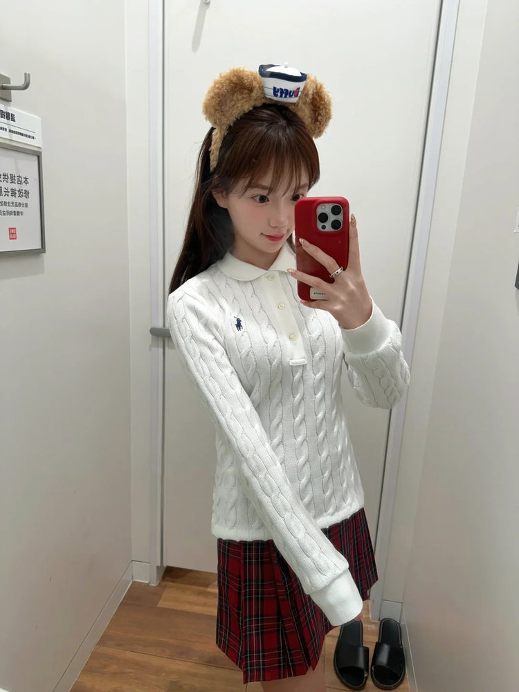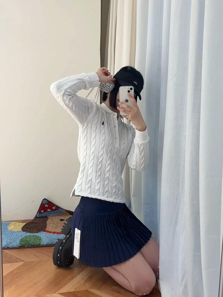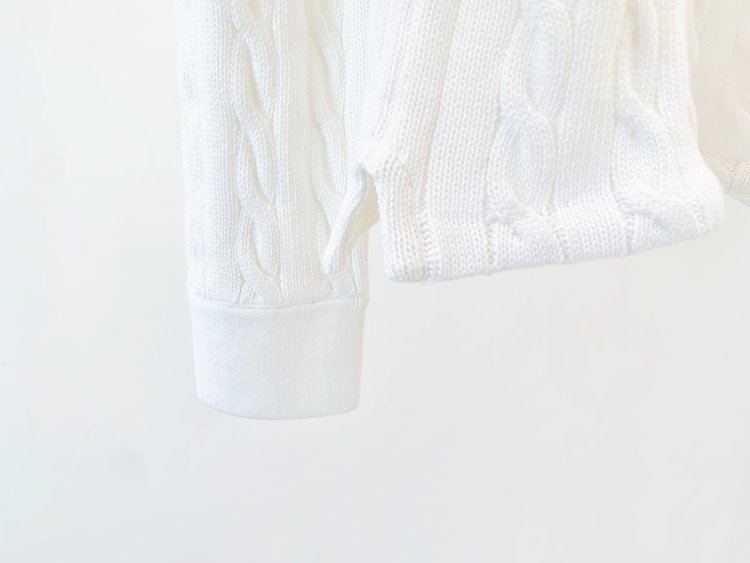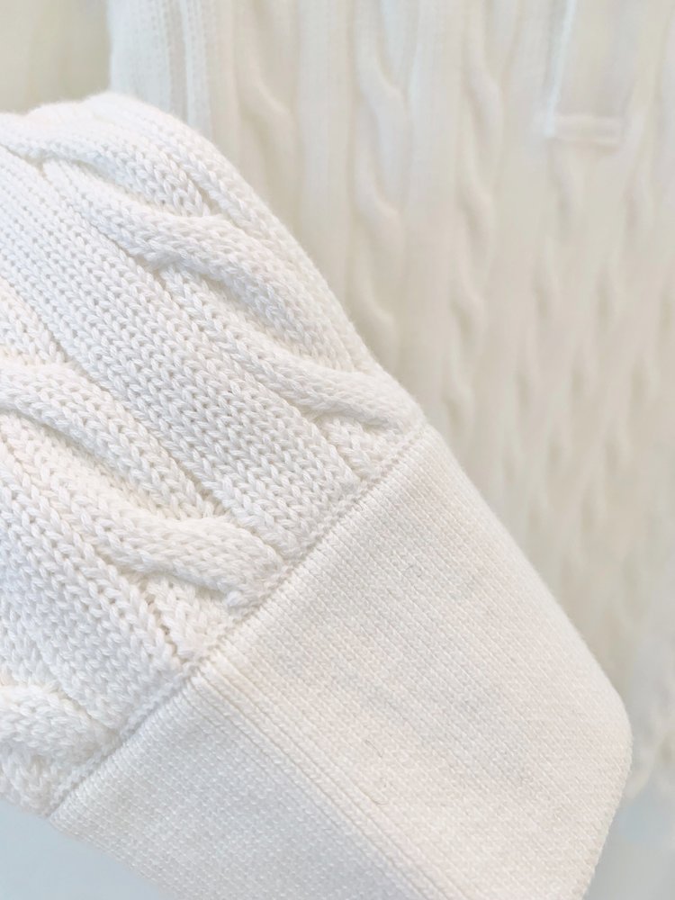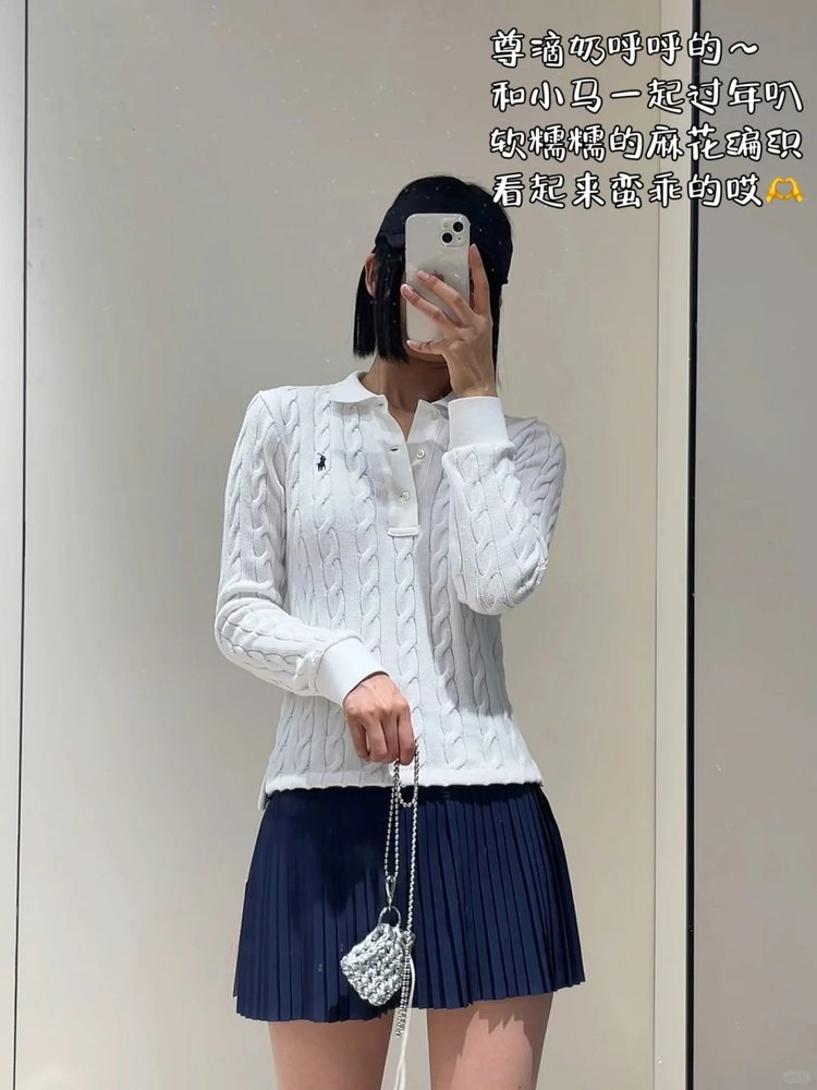 选用棉质纱线绞花编结而成,胸前饰有标志性小马刺绣