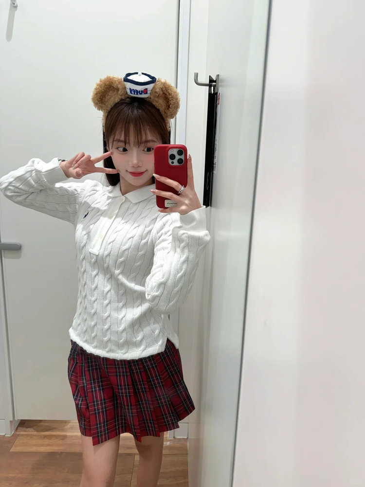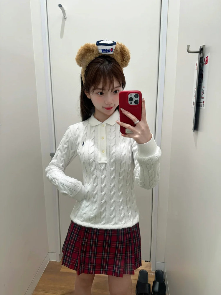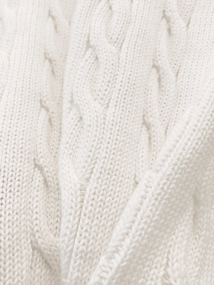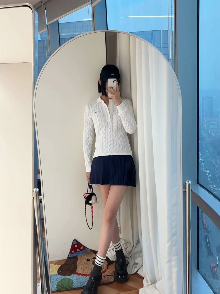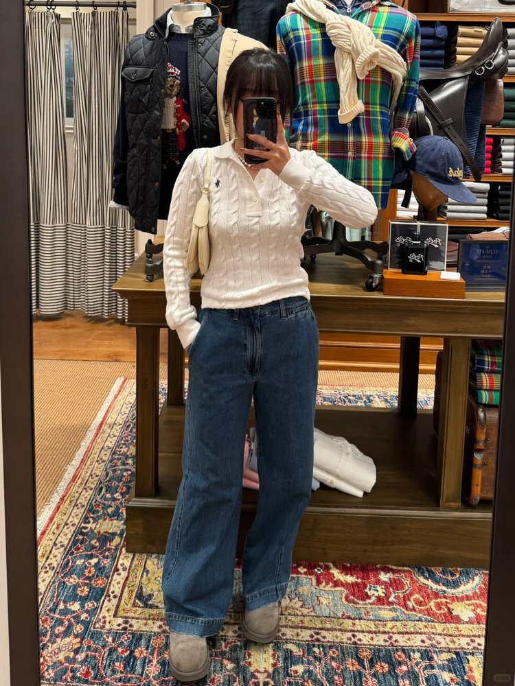 选用棉质纱线绞花编结而成,胸前饰有标志性小马刺绣