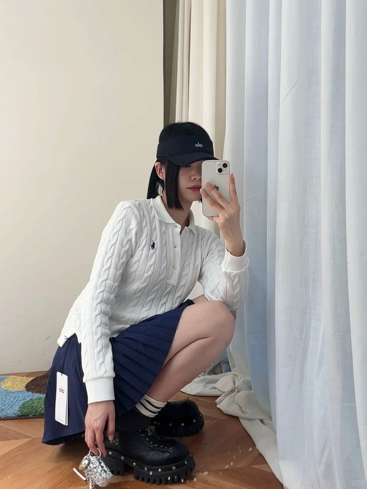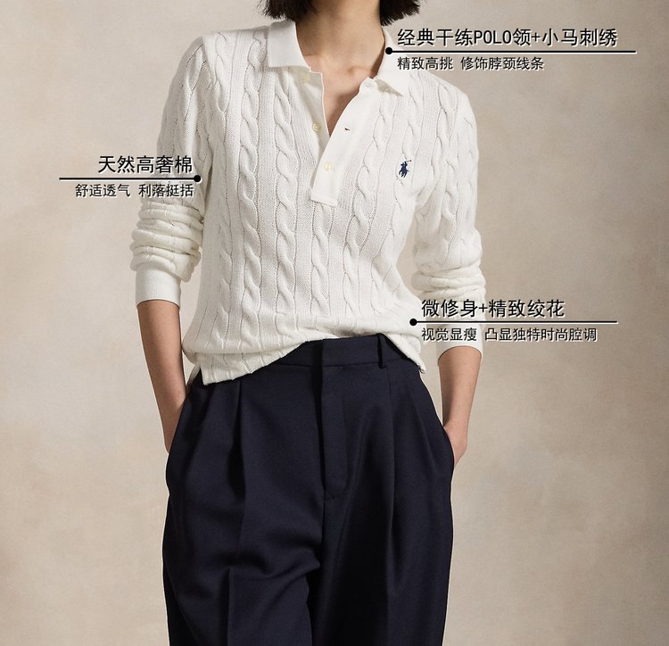 这件拉夫劳伦绞花棉质编织 Polo 上衣,从面料到版型,
