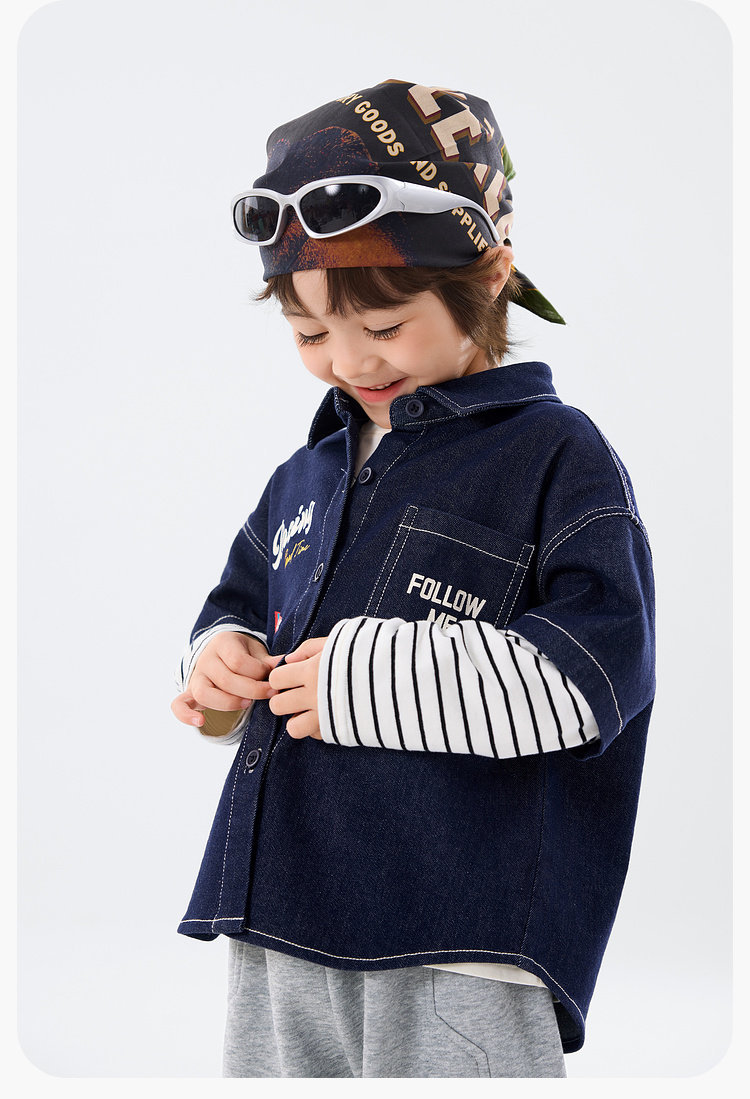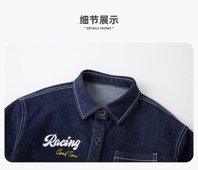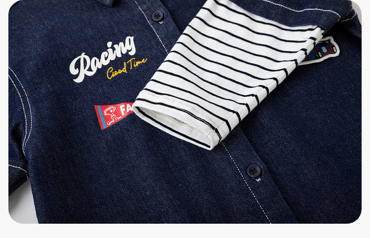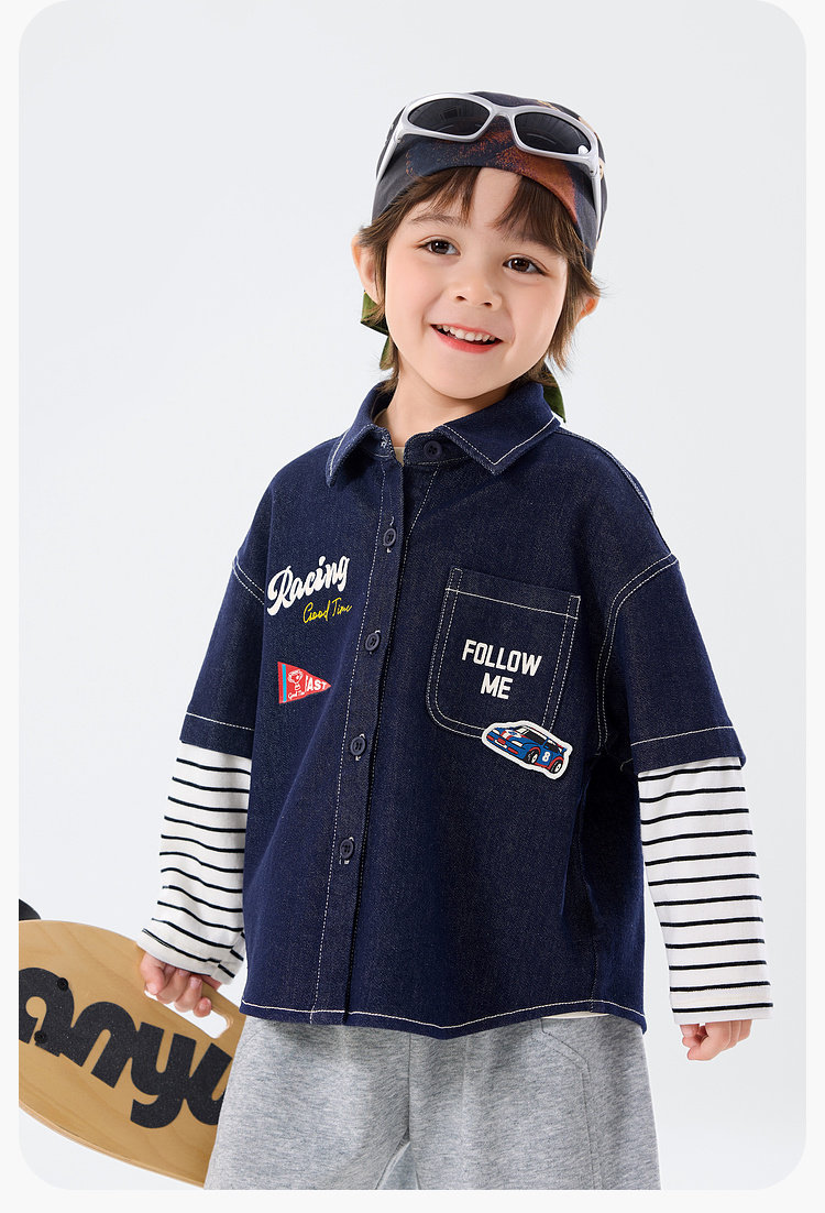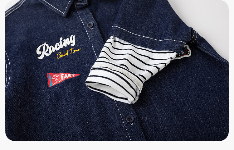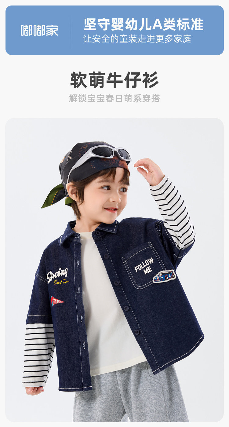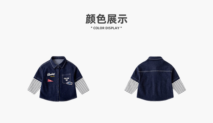 嘟嘟家男童牛仔衬衫女童新款春装宝宝春季衣服儿童春秋拼接袖上衣T6ACS020