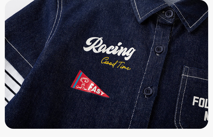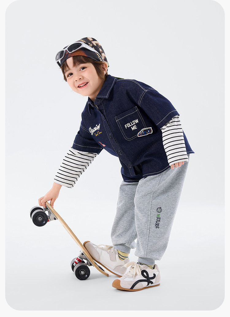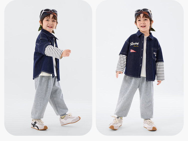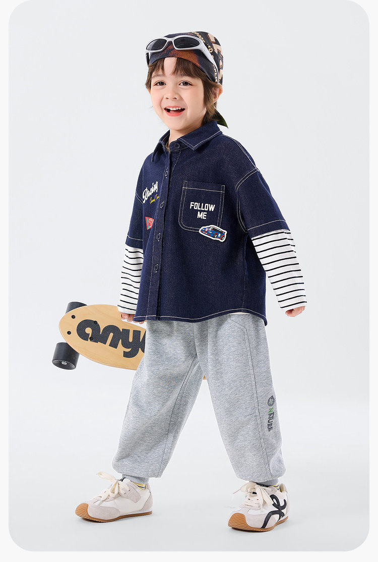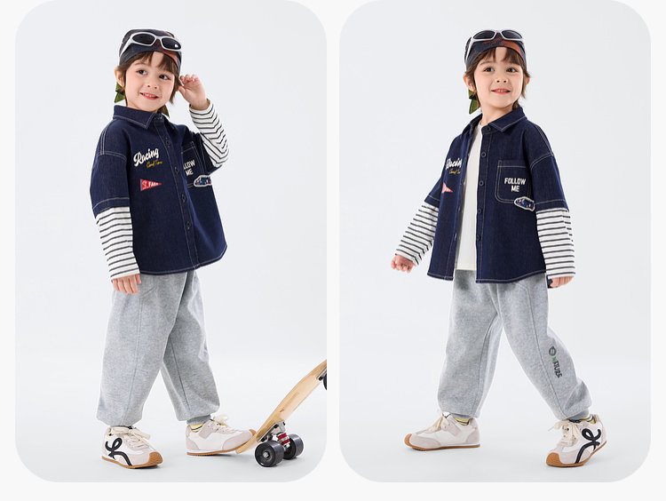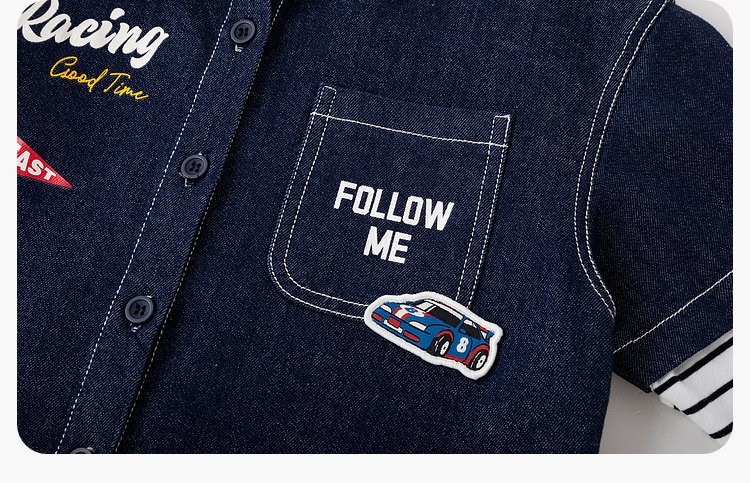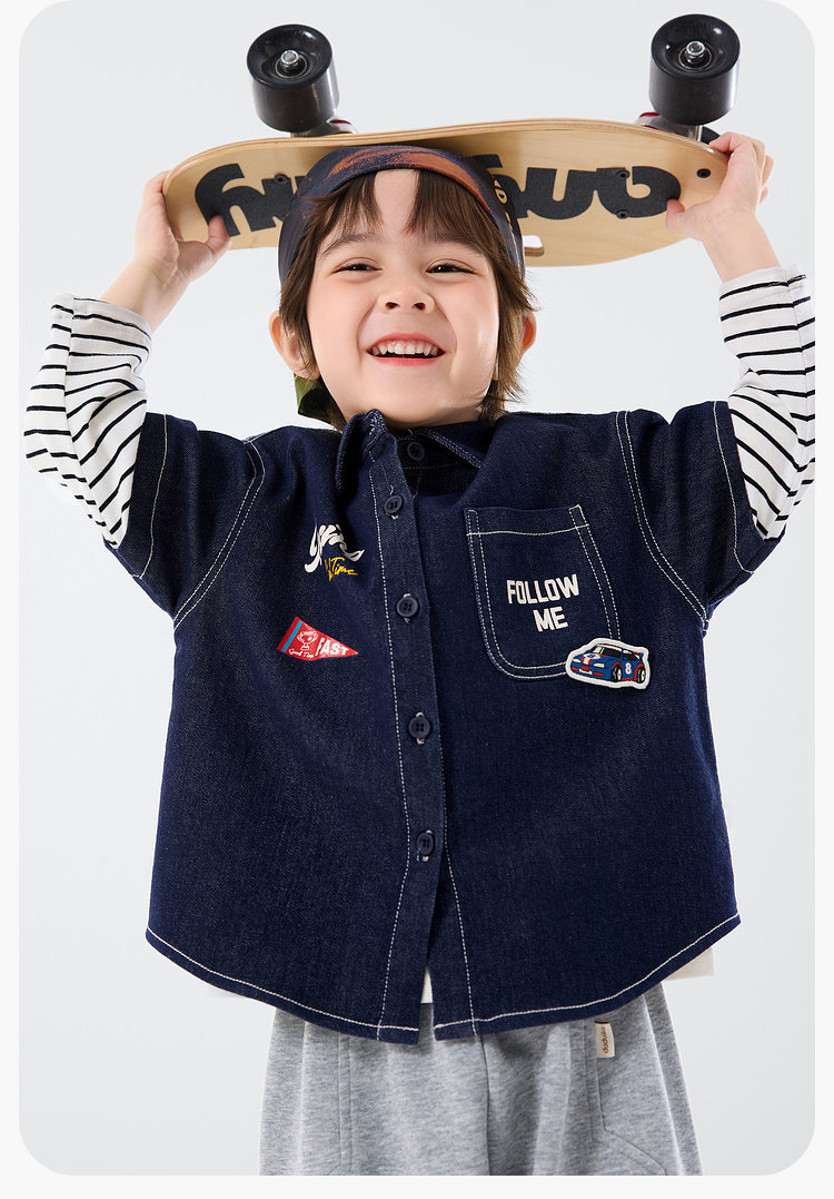 嘟嘟家男童牛仔衬衫女童新款春装宝宝春季衣服儿童春秋拼接袖上衣T6ACS020