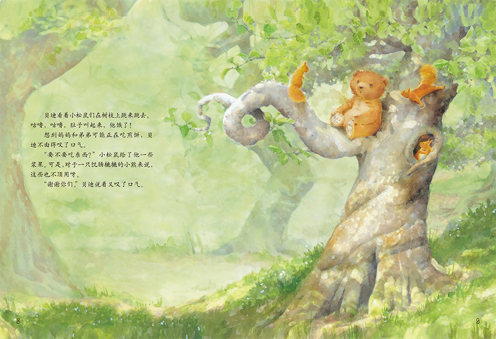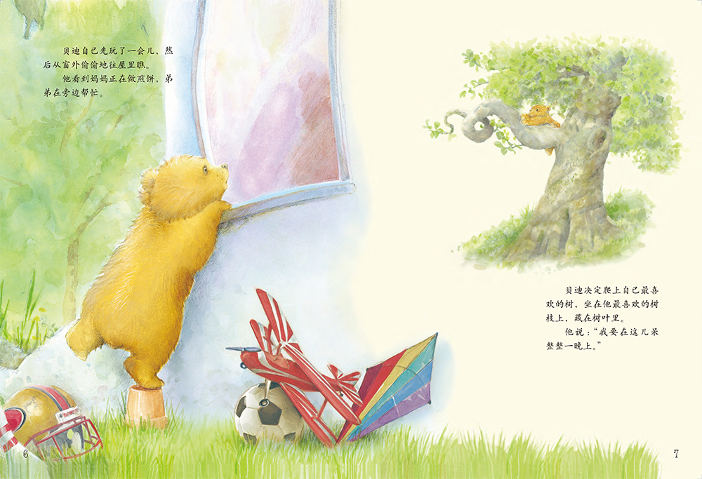 小熊贝迪和弟弟吵了一架,一生气,他离开了家。贝迪爬上了一棵神奇的树,他饿了,树上就长出了煎饼。啊,这是一棵神奇的煎饼树!他冷了,树上就长出了毯子。啊,这是一棵煎饼-毯子树!他怕黑,树上就长出了提灯,啊,这是一棵煎饼-毯子-提灯树!这棵树真神奇,可是里面藏着一个爱的秘密。秘密是什么呢?快跟想家的贝迪一起回去看看吧!
