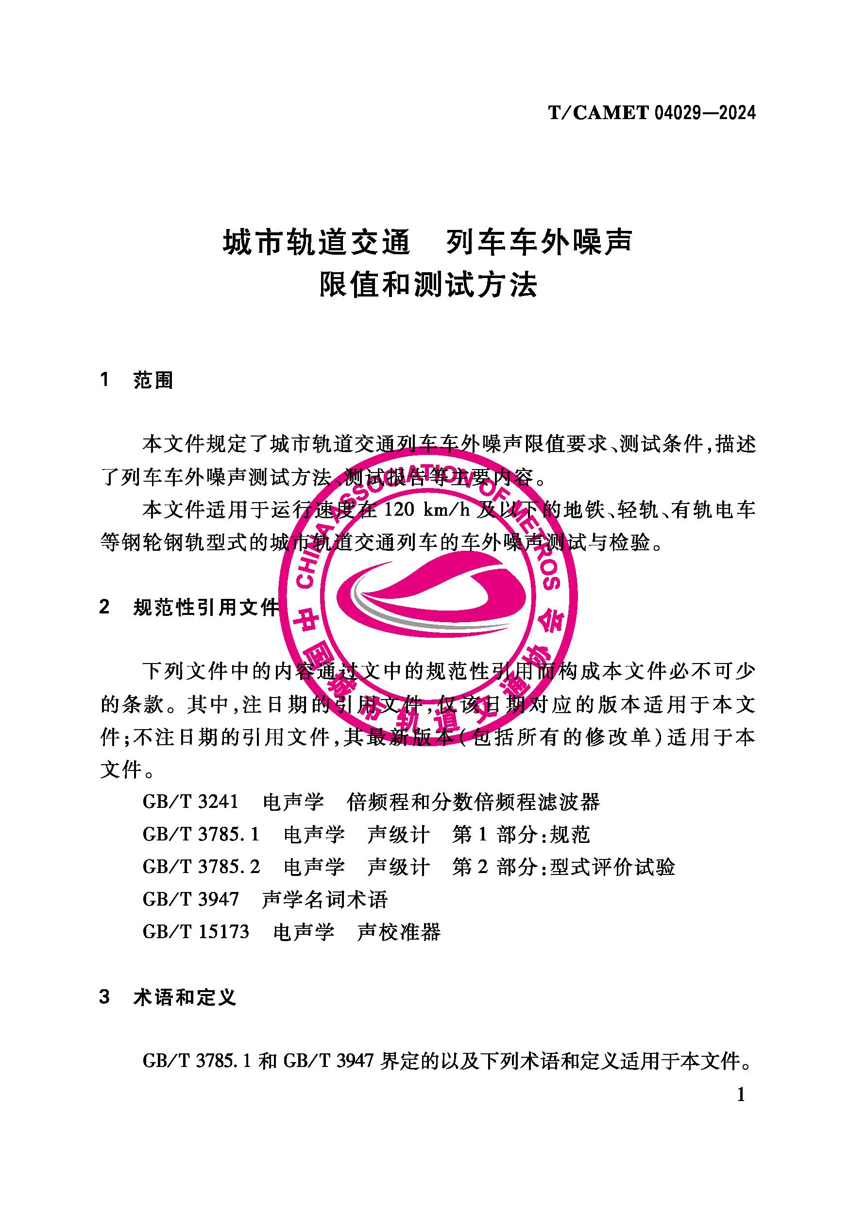 7141 城市轨道交通 列车车外噪声 限值和测试方法(T/CAMET 04029-2024)