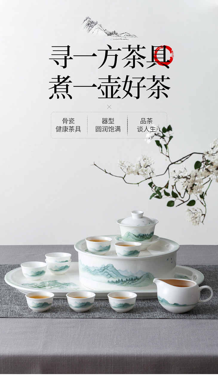 12头绿水青山骨瓷茶具套装