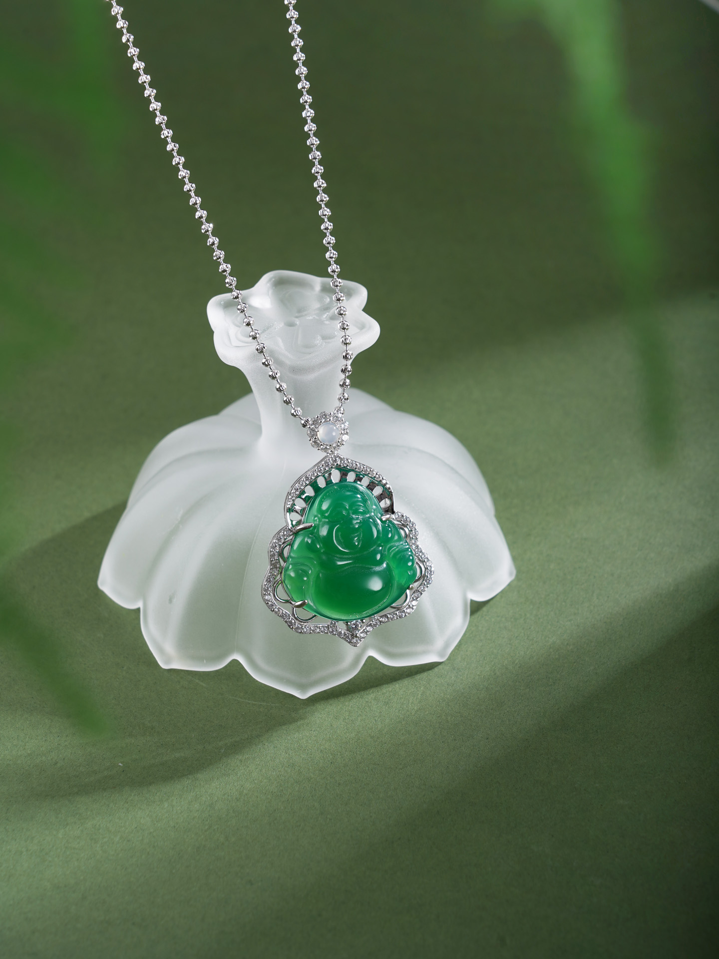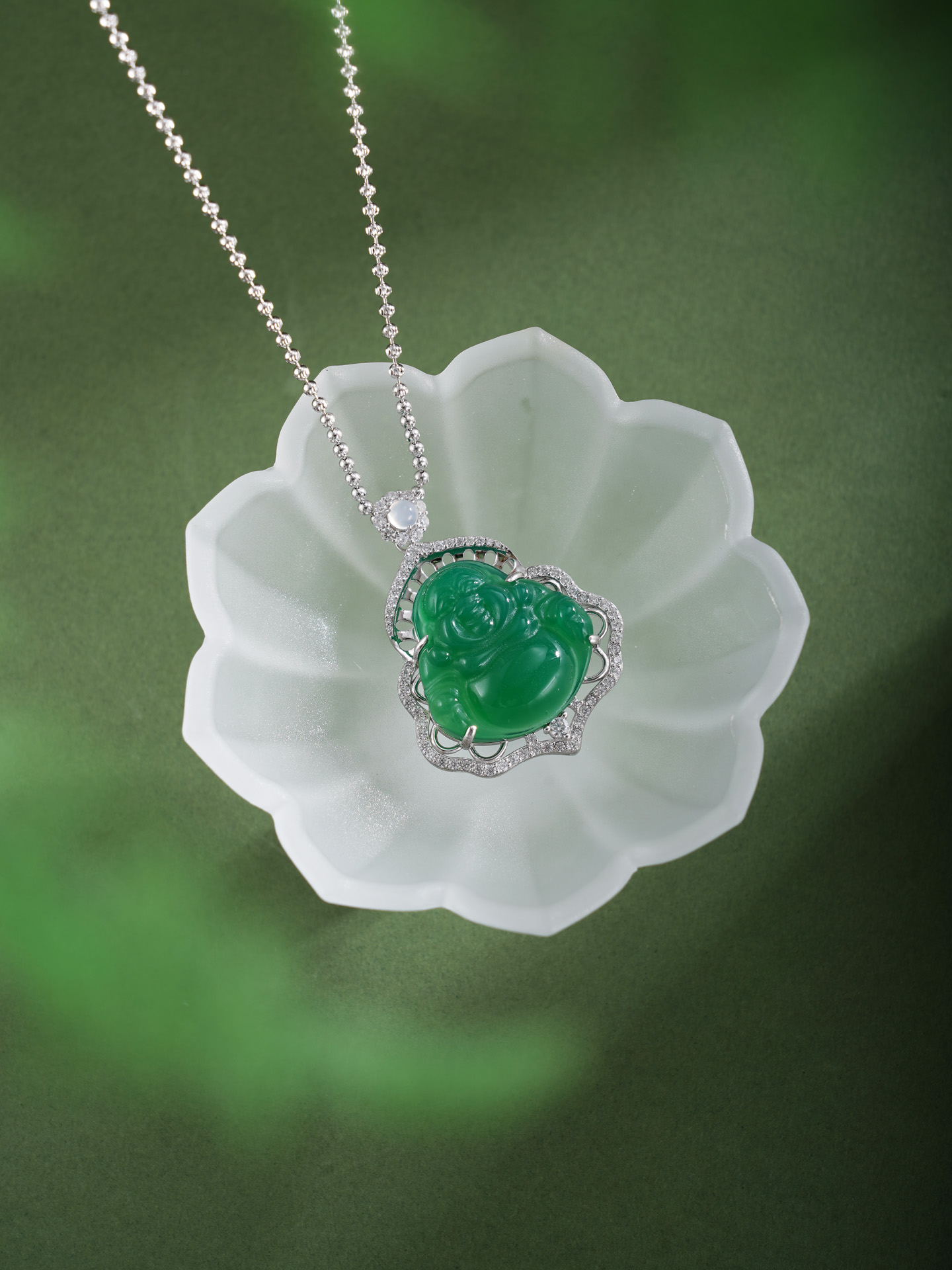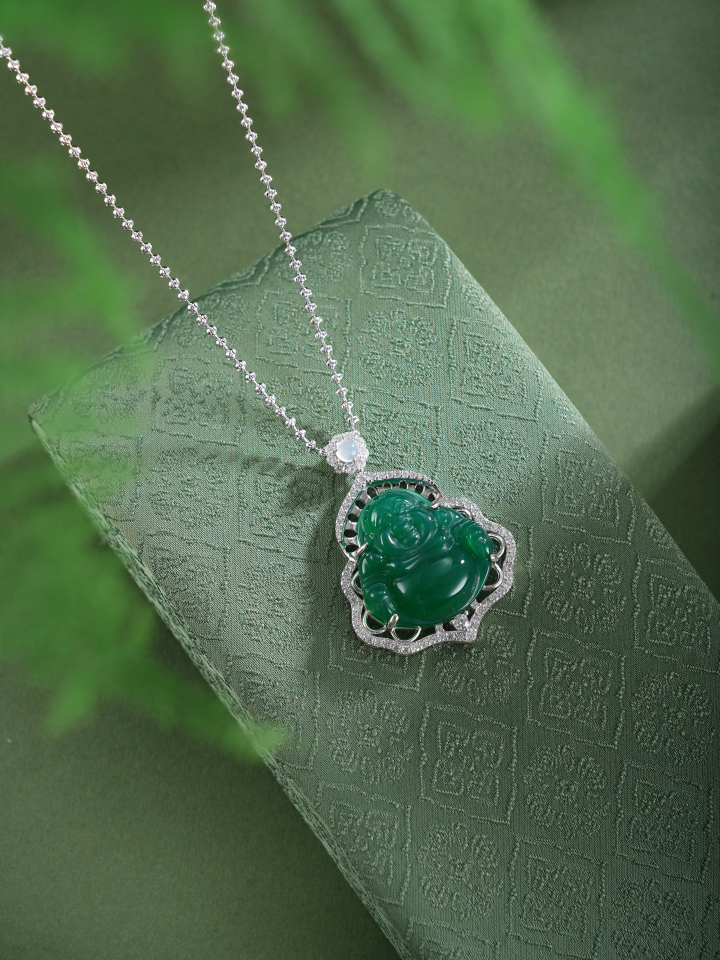 子佩集【财源弥勒】银S925套链项链【TL016623】绿玉髓大佛2602
