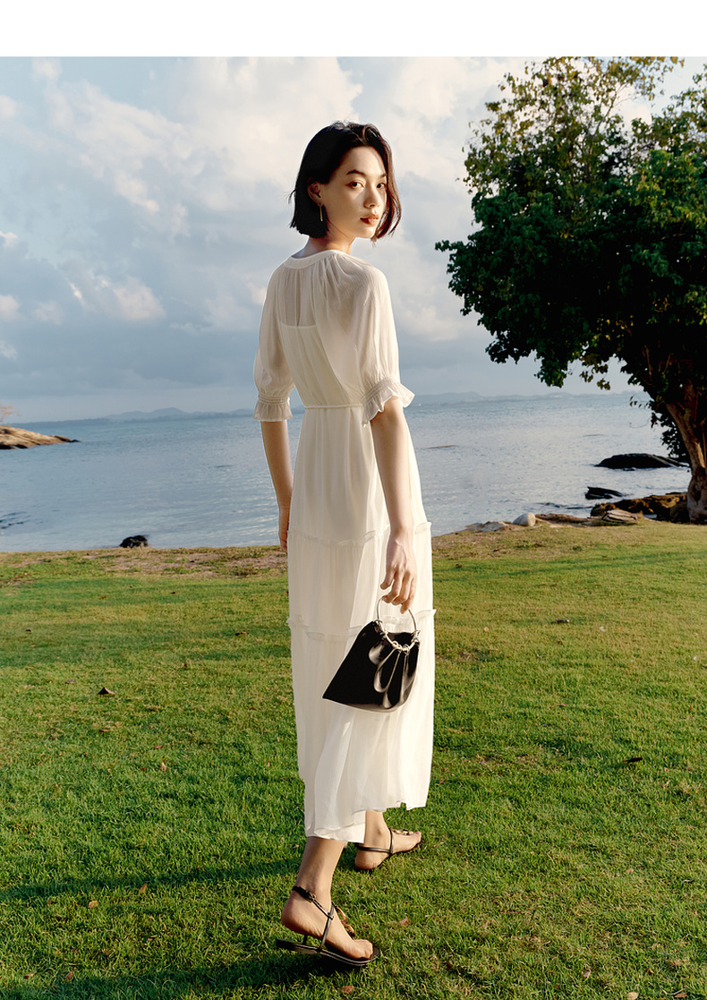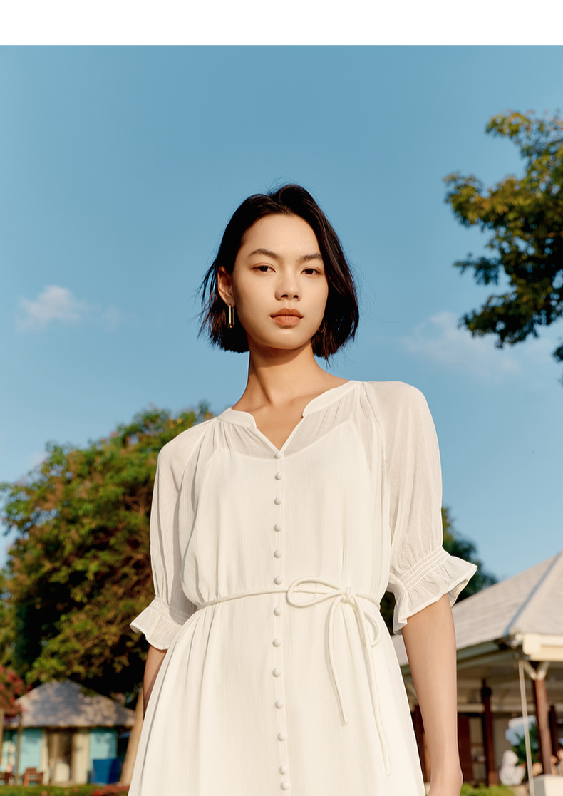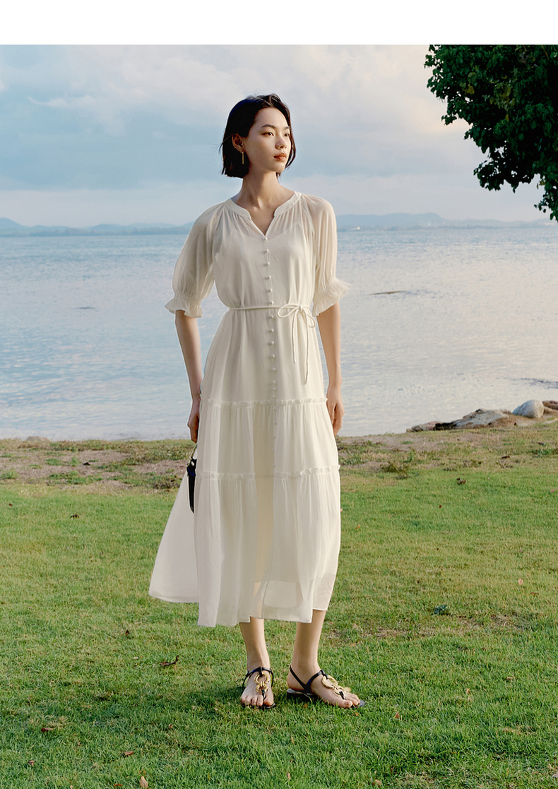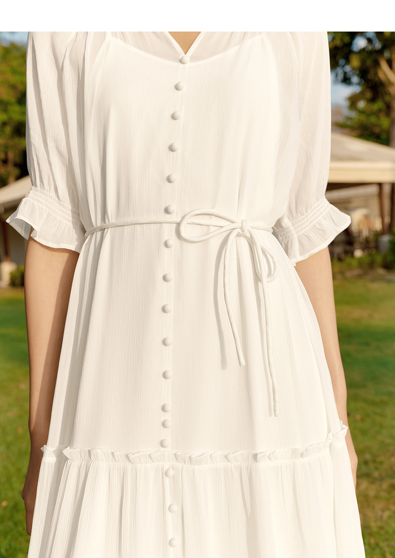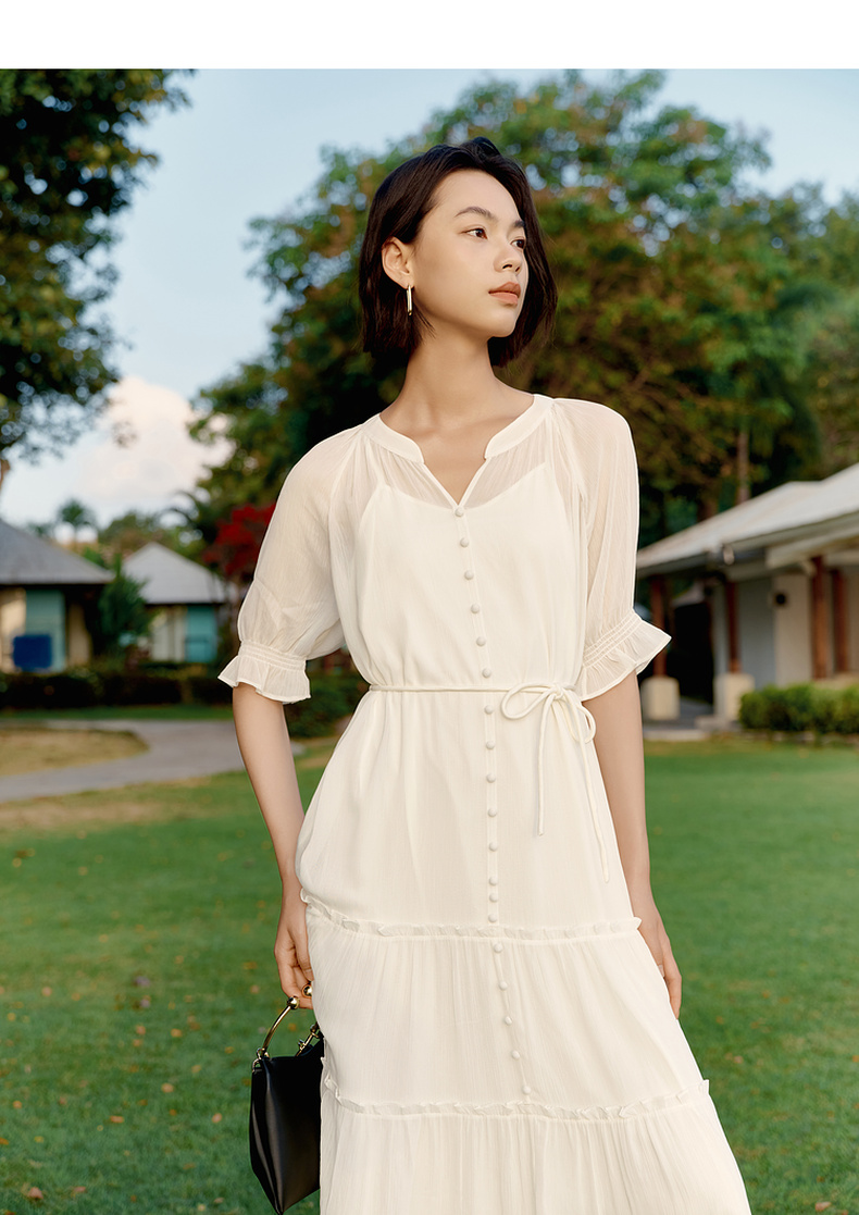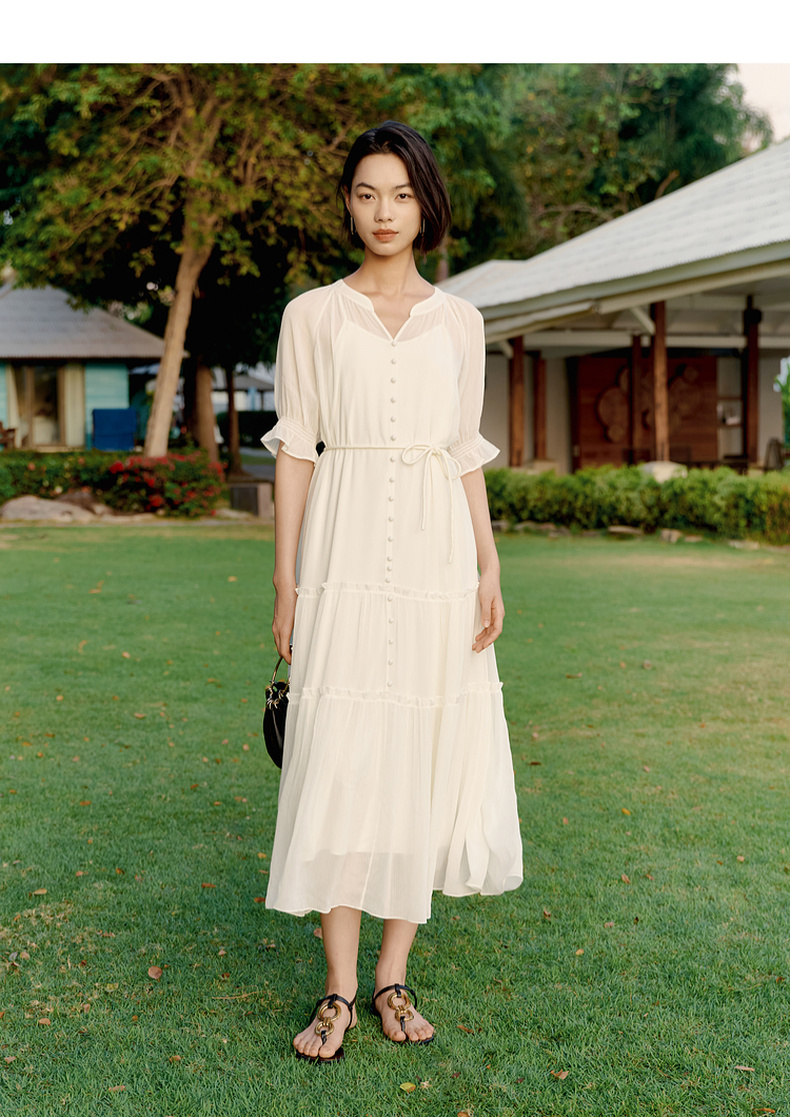 【严选】伊芙丽设计感蛋糕裙A型腰带收腰仙女裙2024春装新款气质连衣裙1F4990711