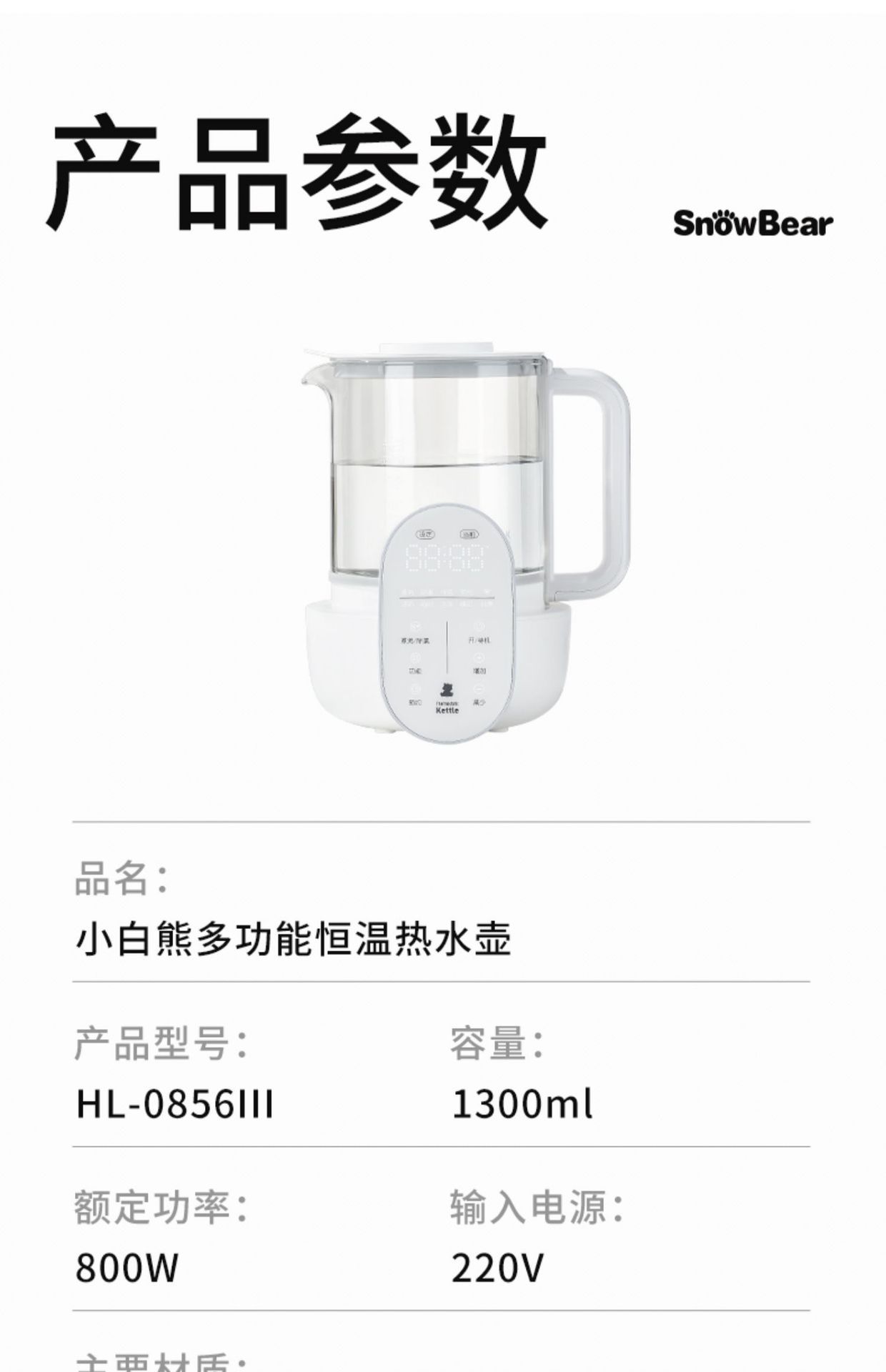 小白熊恒温调奶器1.3L三代升级新款恒温暖奶器温奶器热水壶HL0856