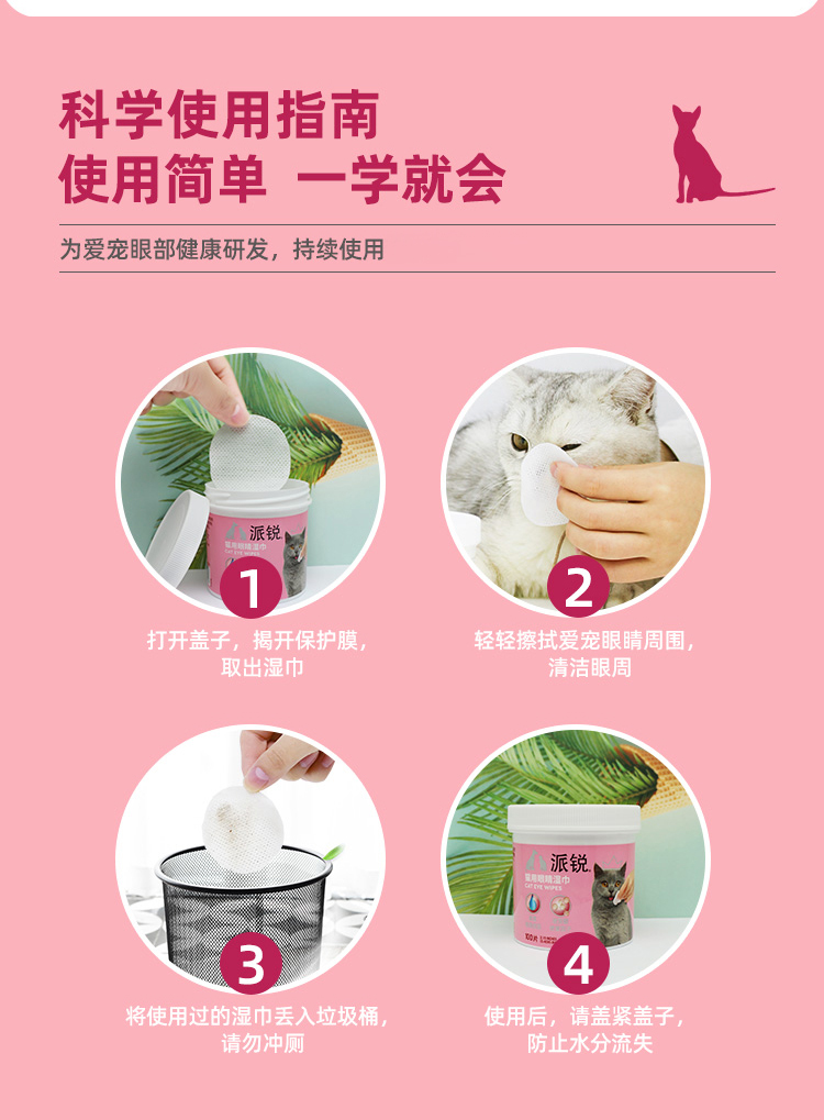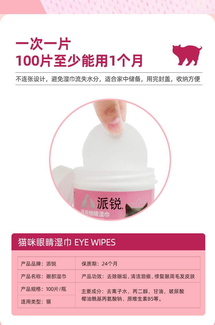 派锐狗狗猫咪眼睛清洁泪痕护理除臭湿纸巾100片