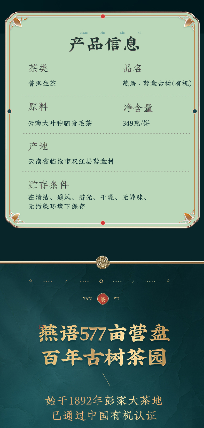 2025燕语有机营盘古树春饼礼盒装349g(生普)