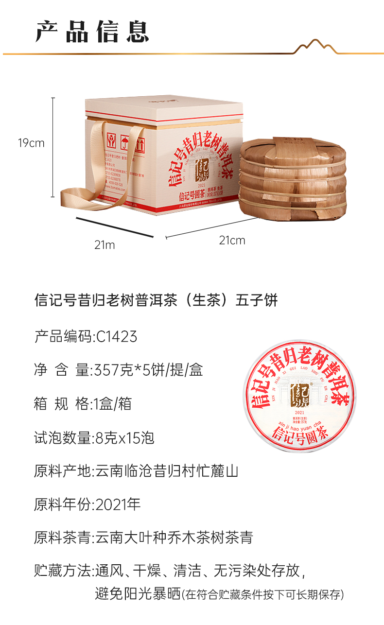 八马信记号|普洱生茶 信记号昔归老树(357克*5饼) C1423
