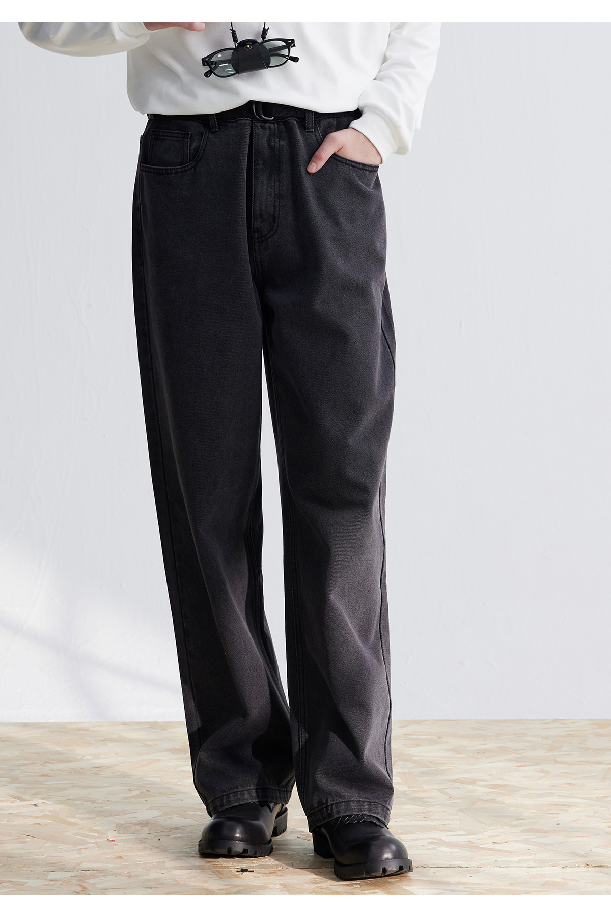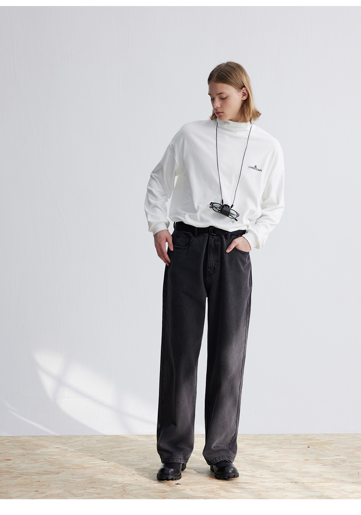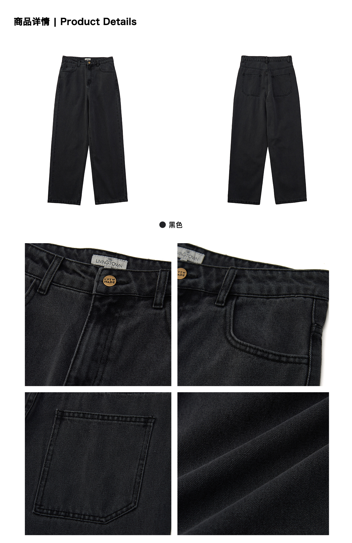 LIVINGTOWN/LT直简黑灰水洗牛仔裤