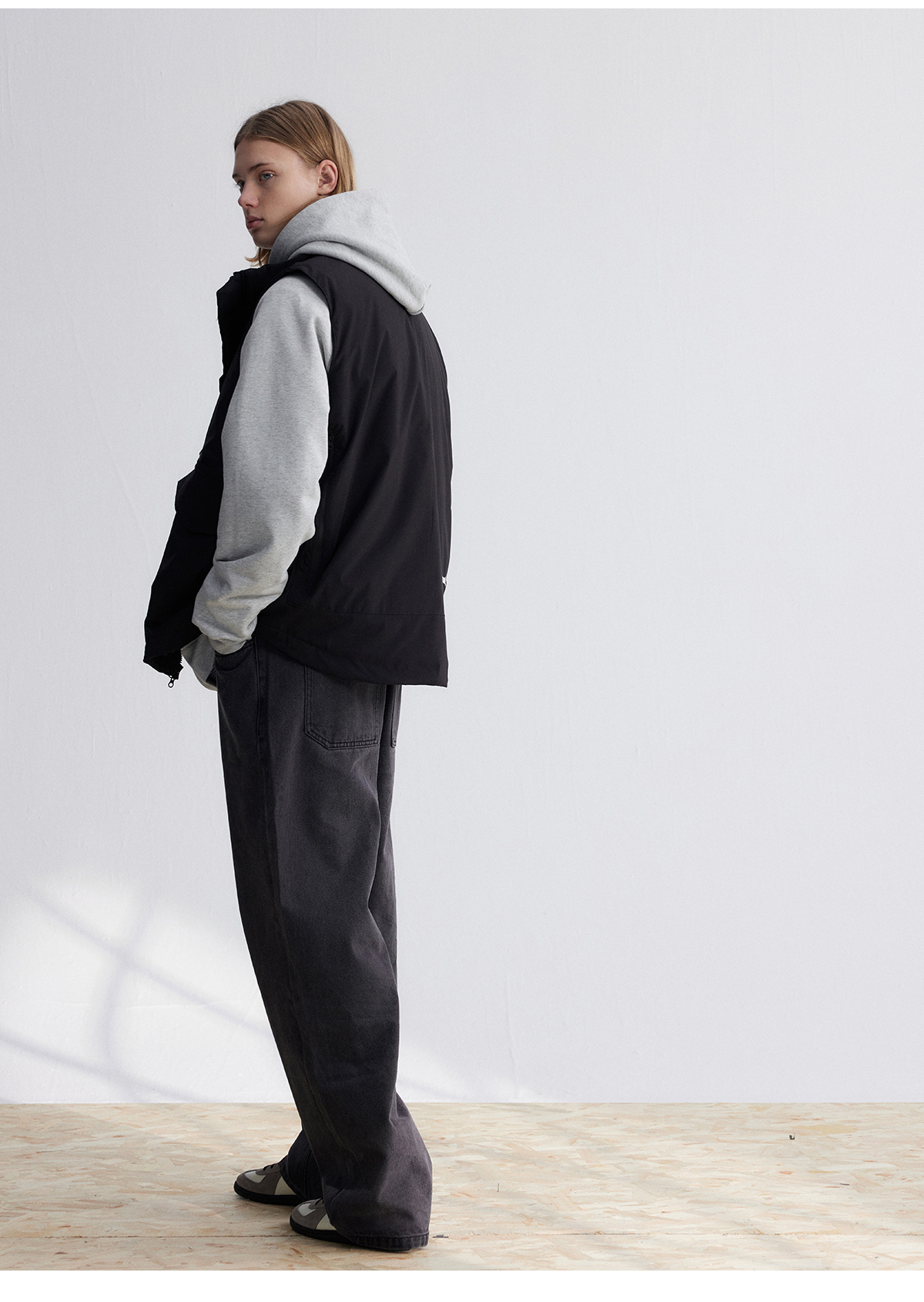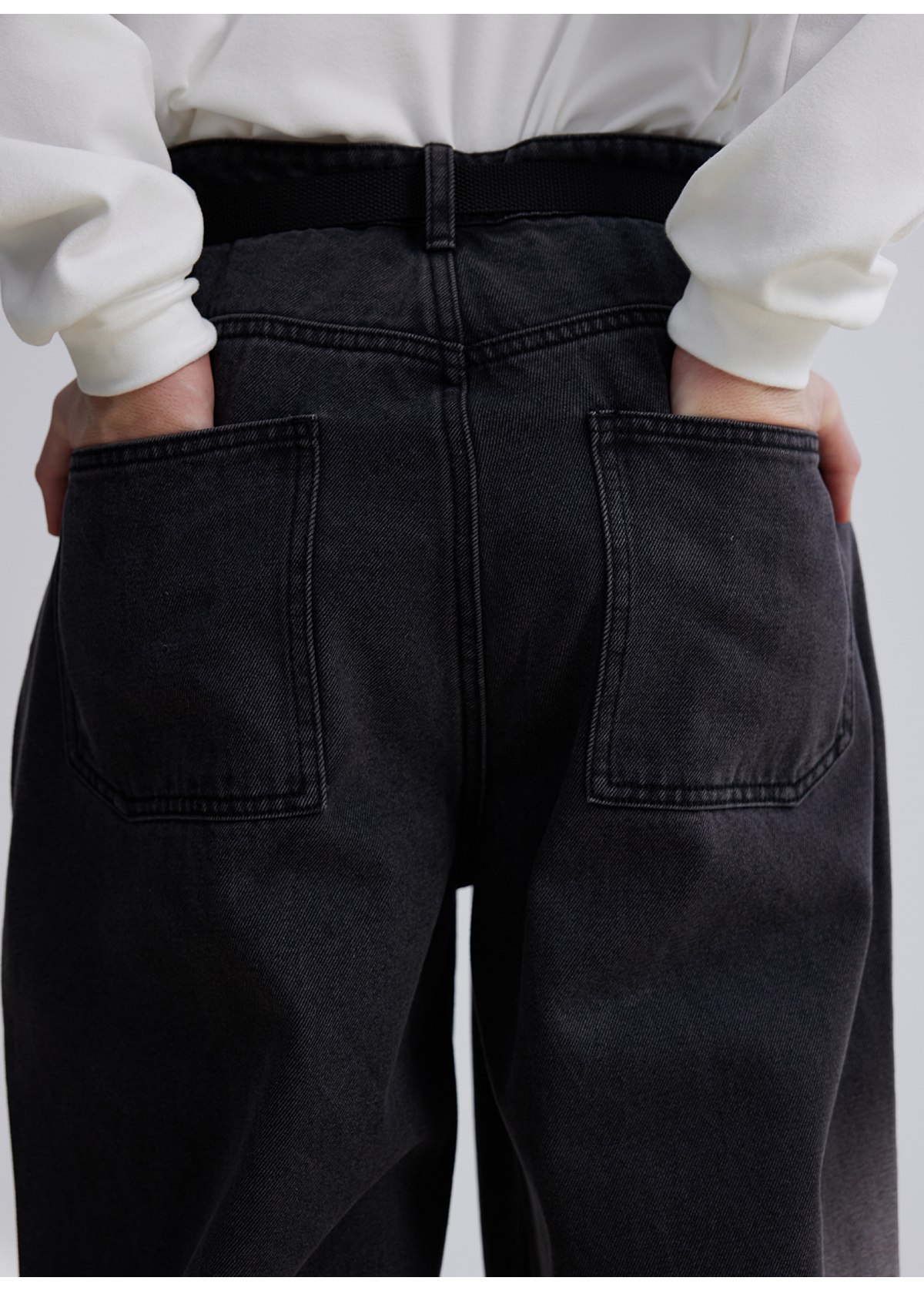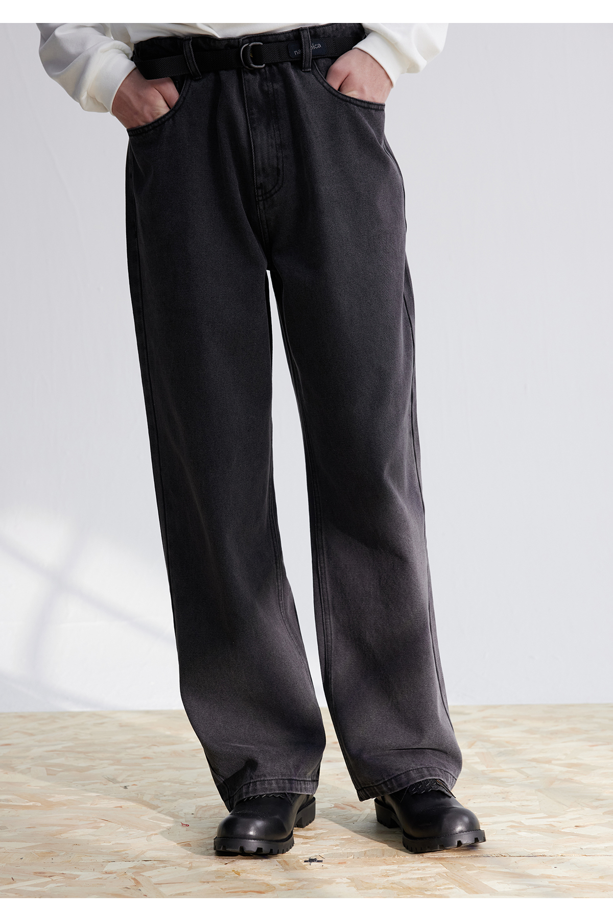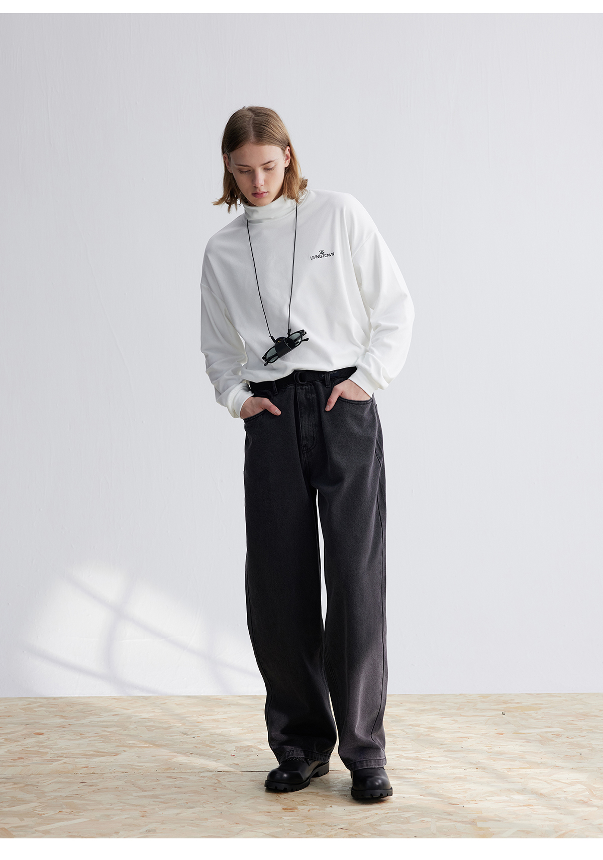 LIVINGTOWN/LT直简黑灰水洗牛仔裤