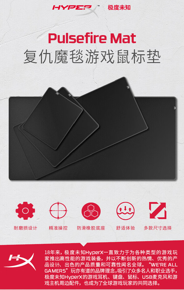 极度未知(HYPERX)复仇魔毯游戏鼠标垫 职业电竞鼠标垫大号电脑桌垫 细面耐磨手垫 复仇魔毯L大号
