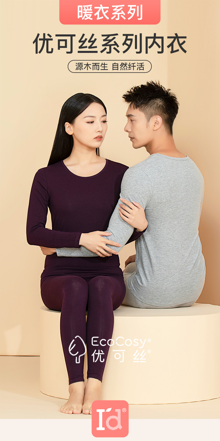 I'd爱帝女式蕾丝棉莫代尔打底保暖内衣套装