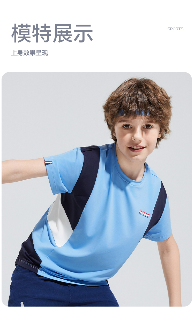 【英氏】【120-170】男童夏季速干凉感短袖T恤