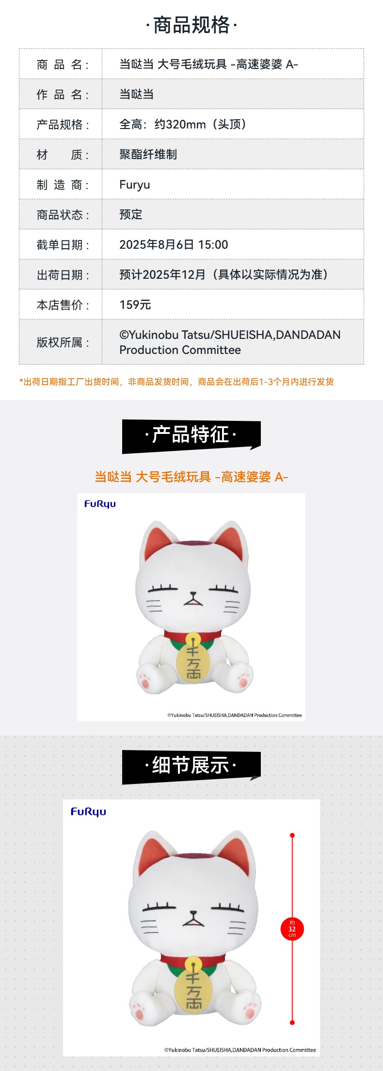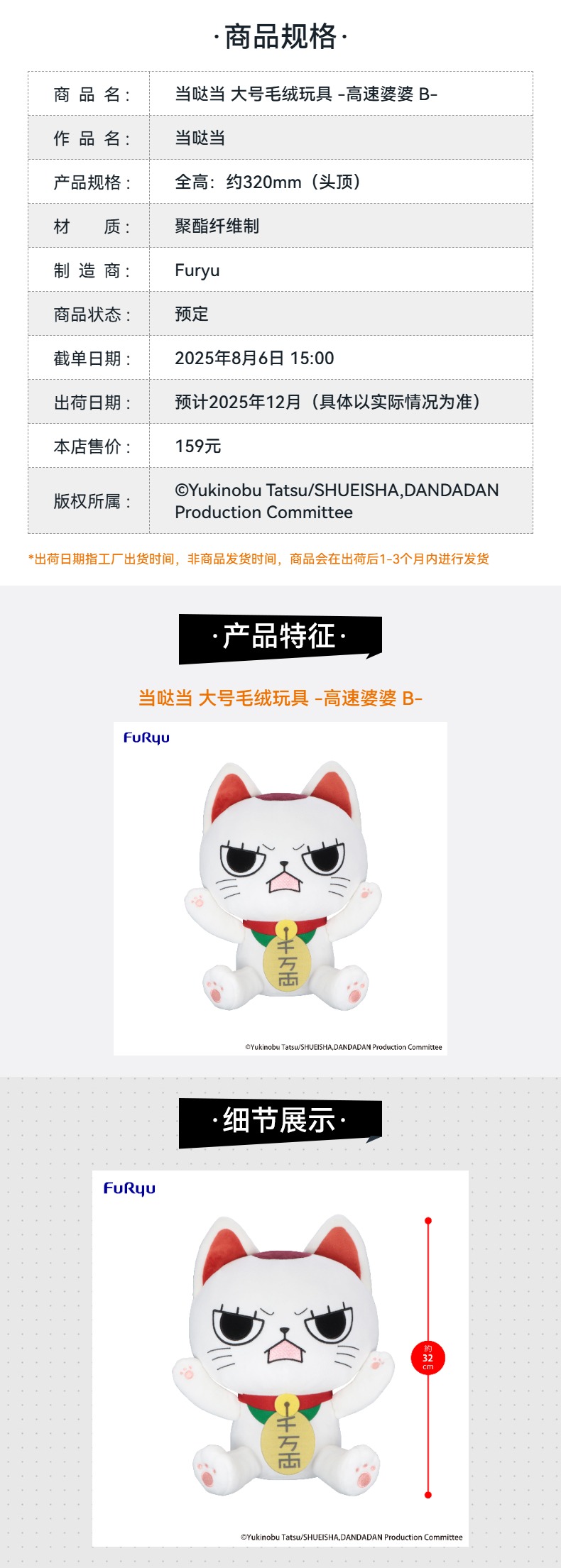 【GSC现货】当哒当 大号毛绒玩具 -高速婆婆 A/B-