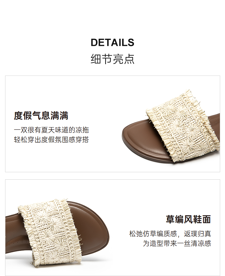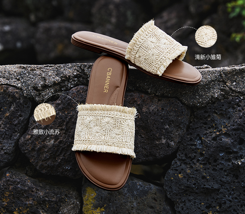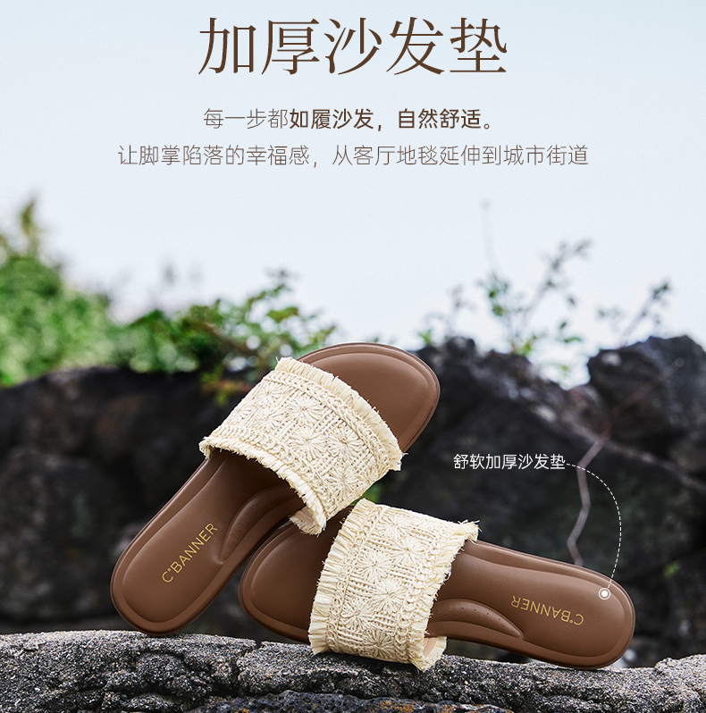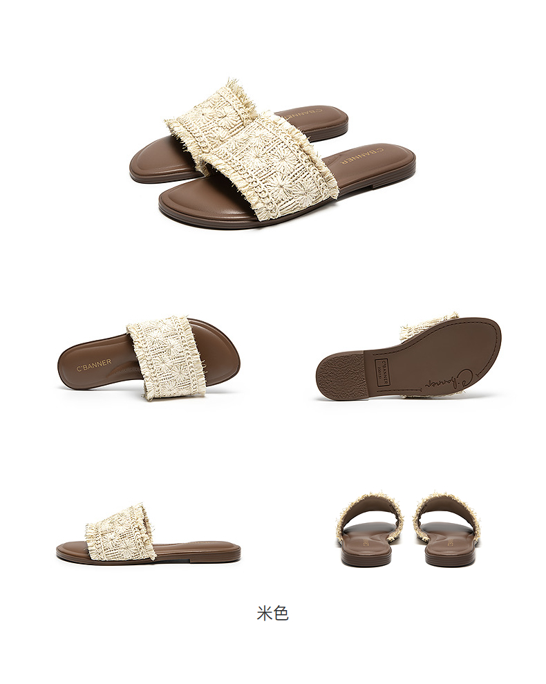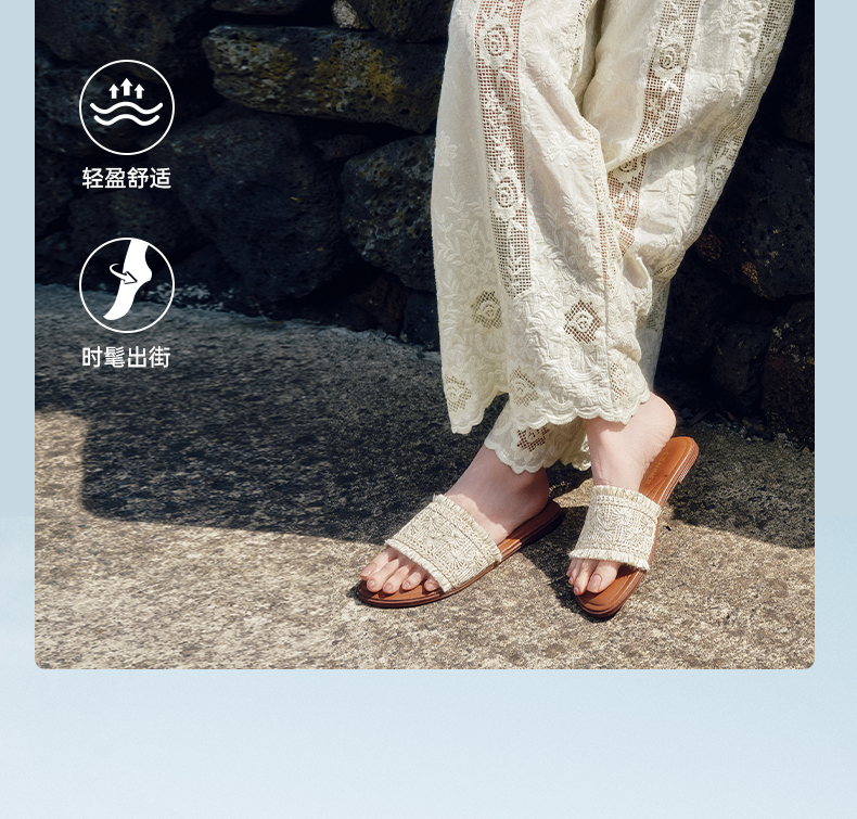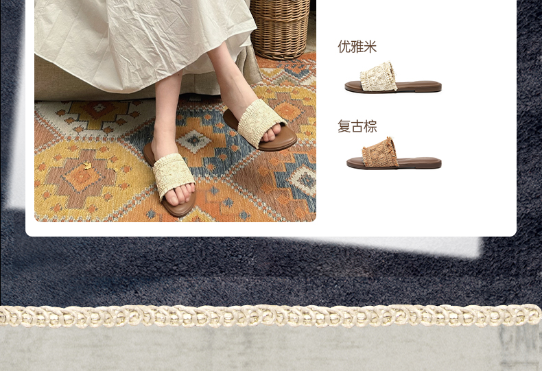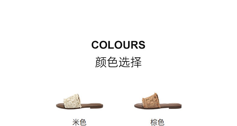 【李晟同款】千百度编织一字拖女平底休闲外穿凉拖鞋A25386508