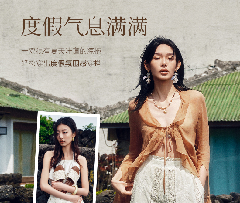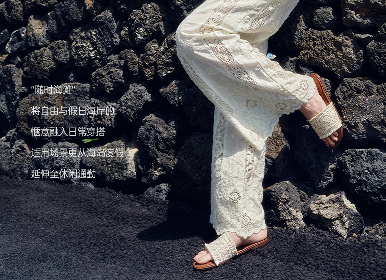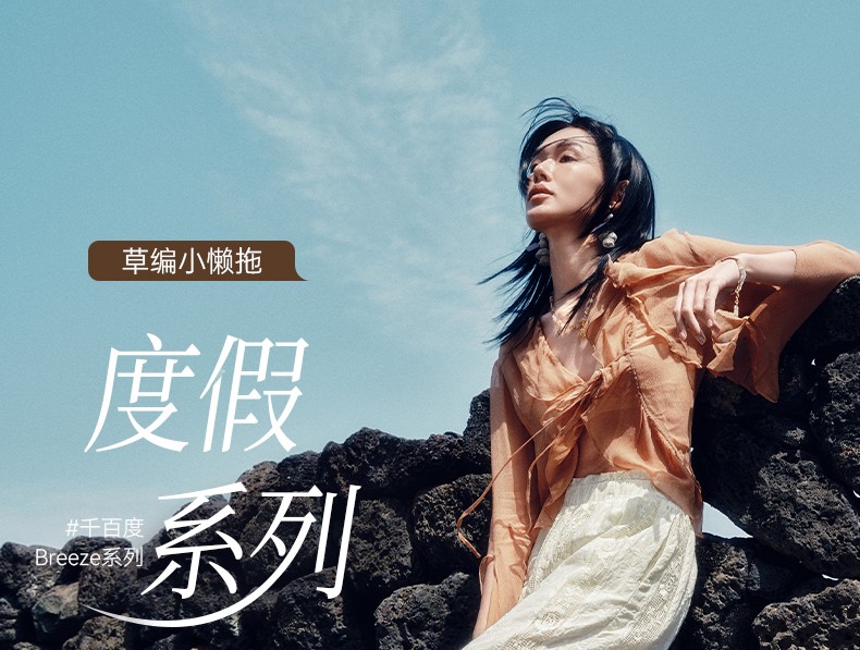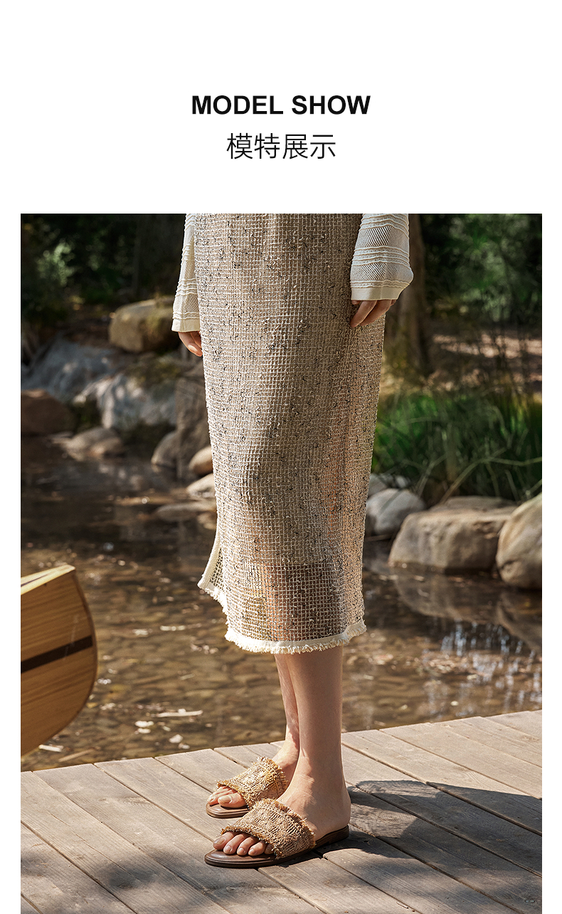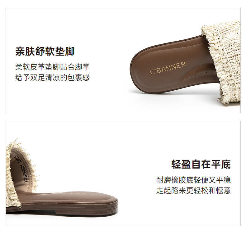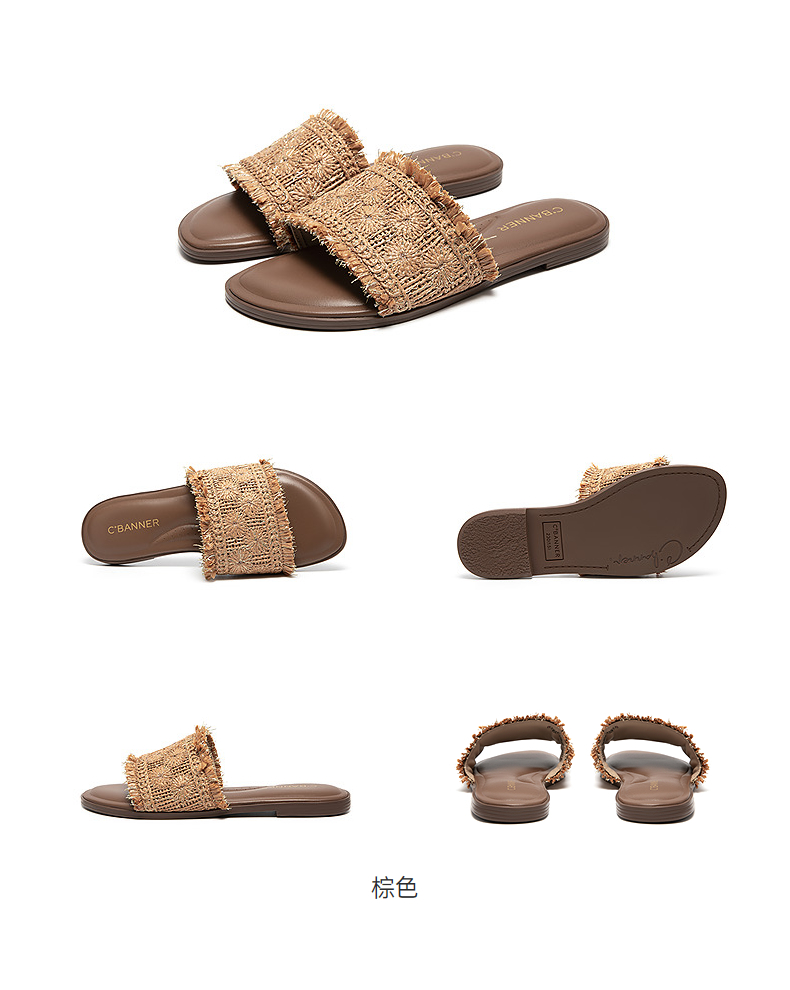 【李晟同款】千百度编织一字拖女平底休闲外穿凉拖鞋A25386508