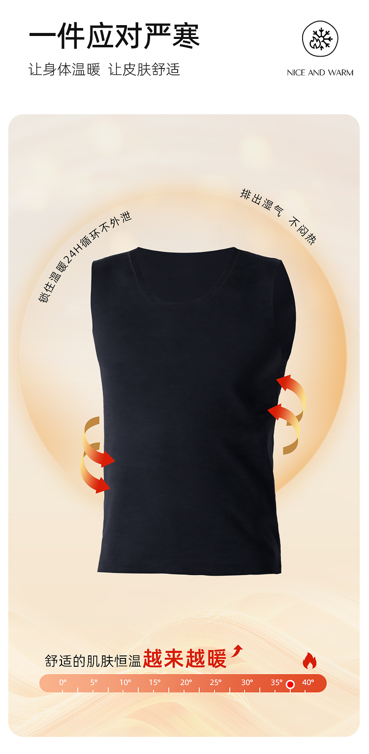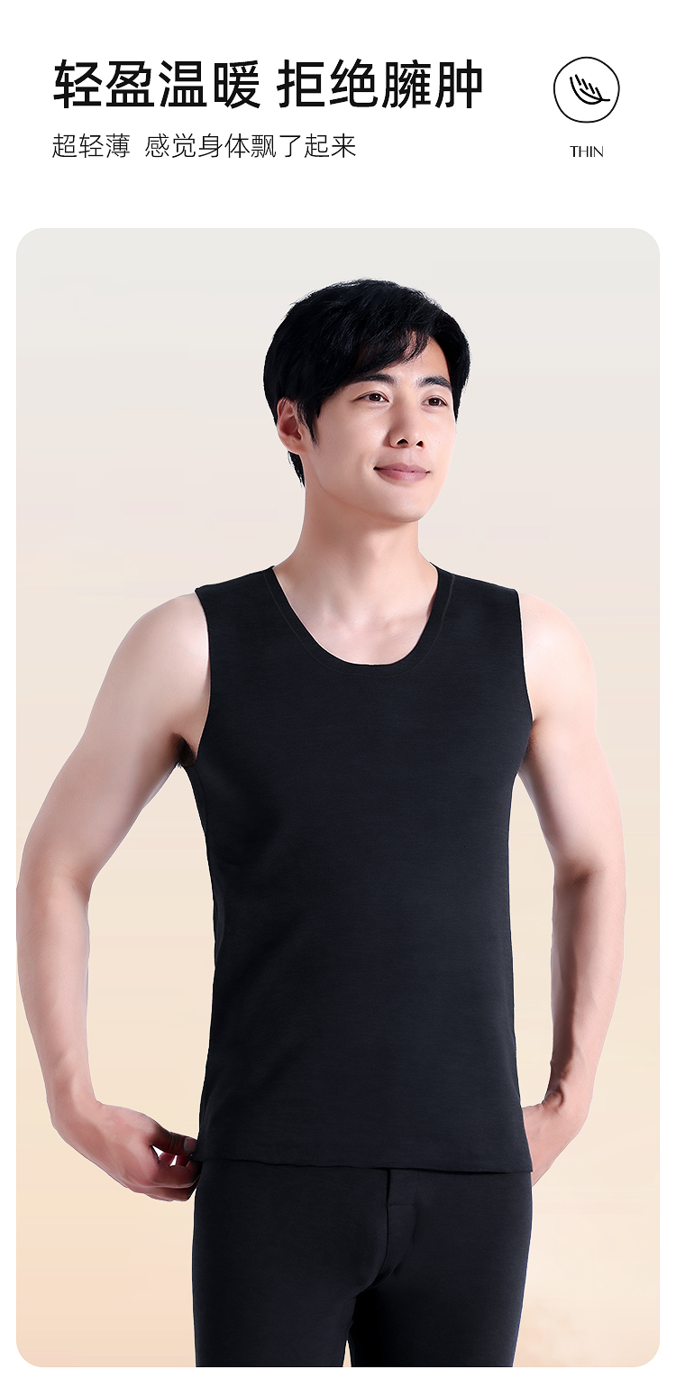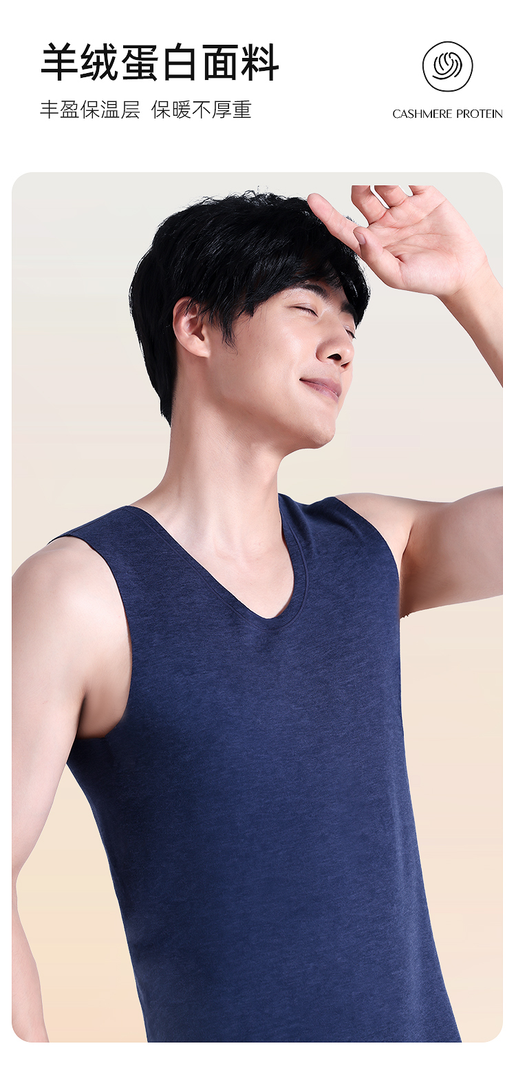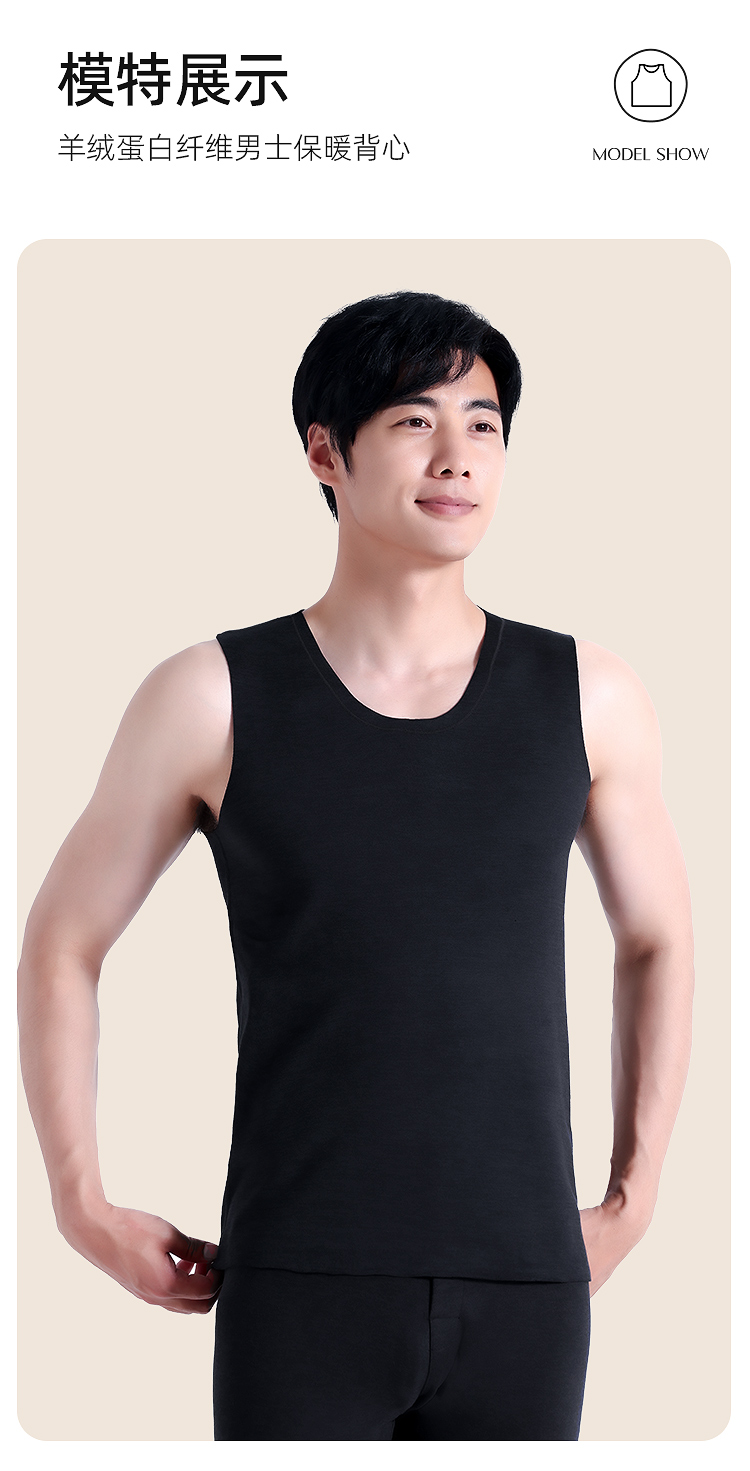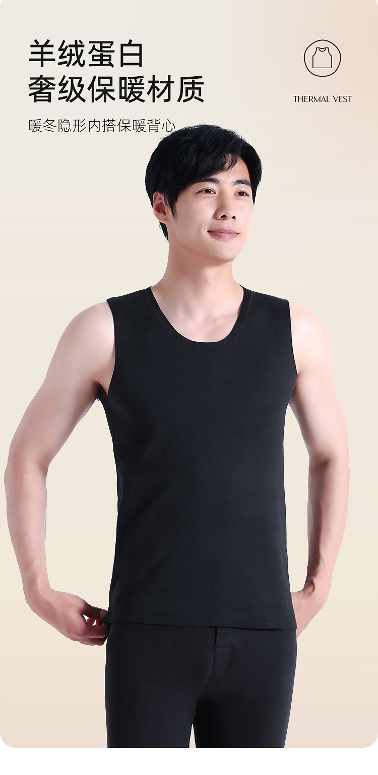 【79元2件,下单拍2】保暖背心男士羊绒蛋白秋冬季内穿薄款无袖打底保暖背心BNN8335