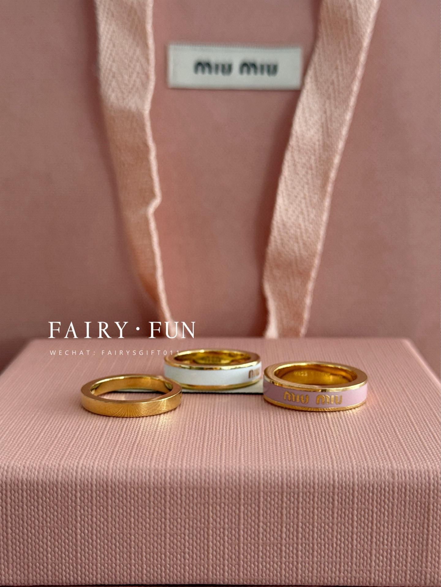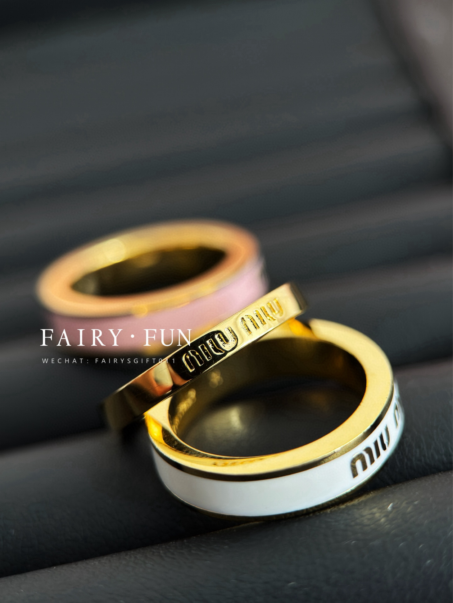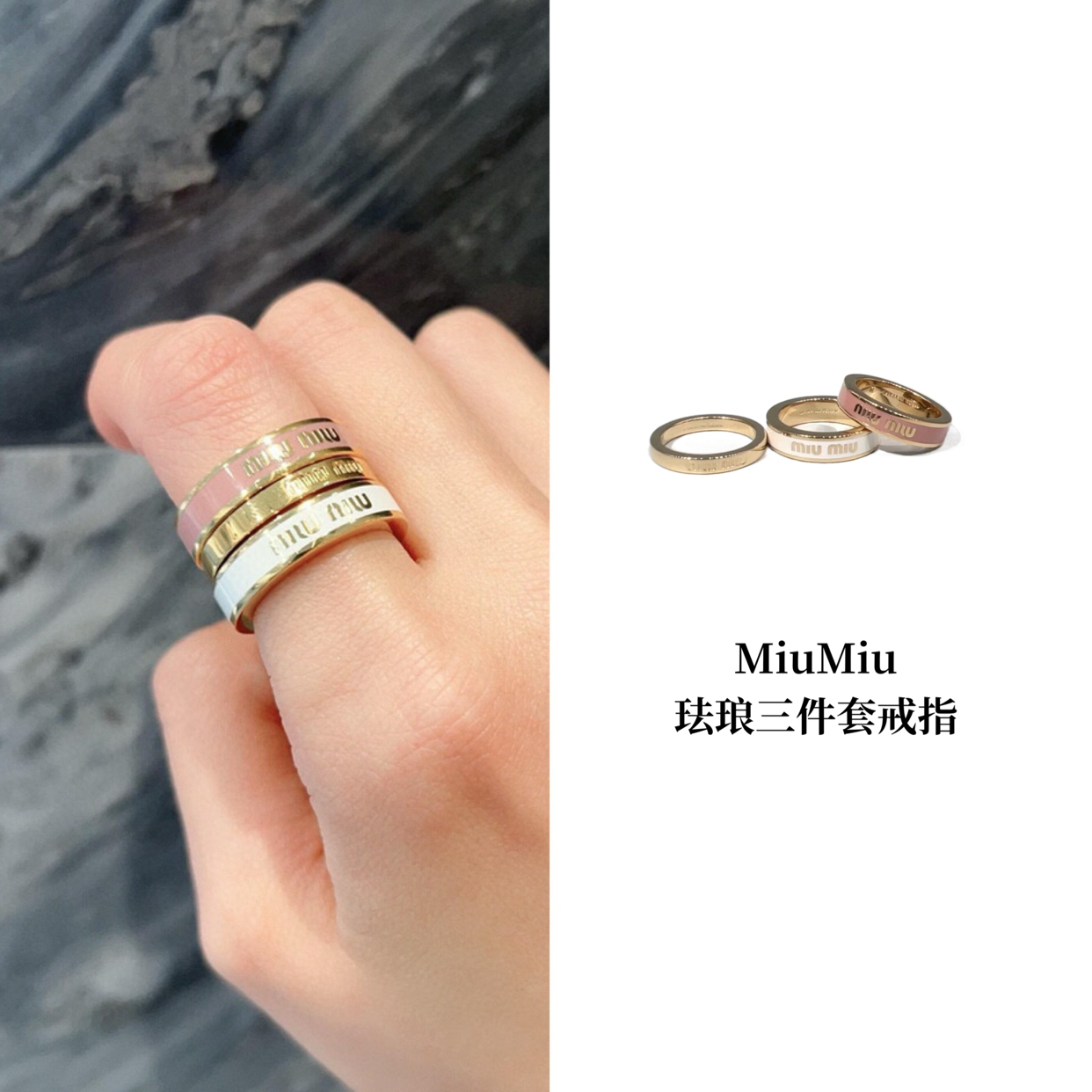 MIU-J 珐琅戒指三件套(白色|胭粉|金)