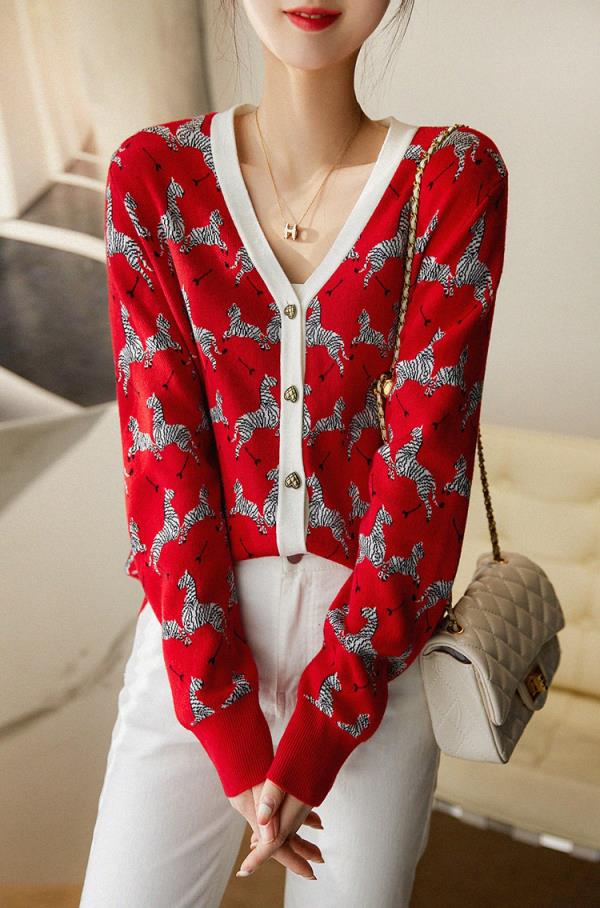 2022新款减龄针织衫女开衫V领显瘦毛衣外套 YYM8505