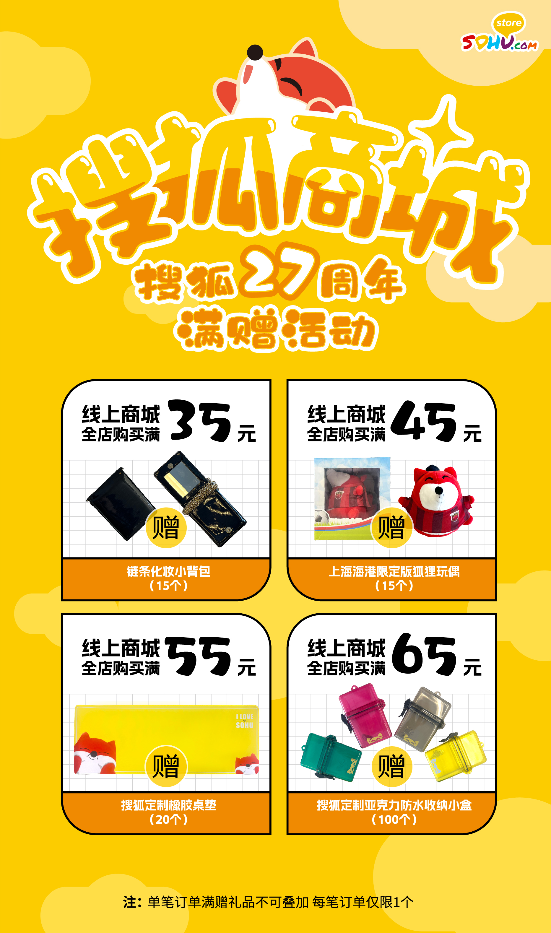 搜狐27周年满赠礼品【务必随单拍下!不拍默认不送】