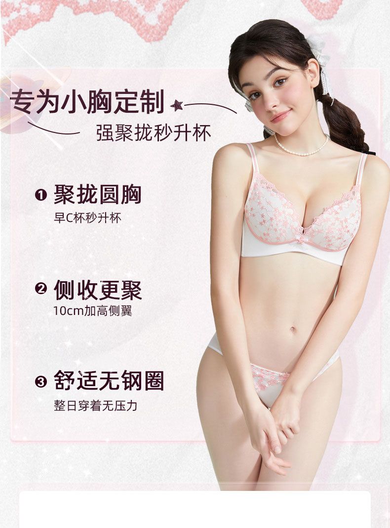 好奇蜜斯蕾丝内衣女聚拢小胸显大无钢圈新款爆款文胸罩套装 科恩