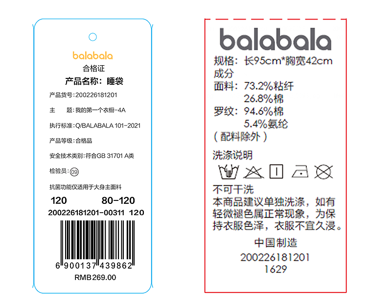 【商场同款】巴拉巴拉宝宝睡袋婴儿睡衣柔软亲肤舒适印花满印可爱