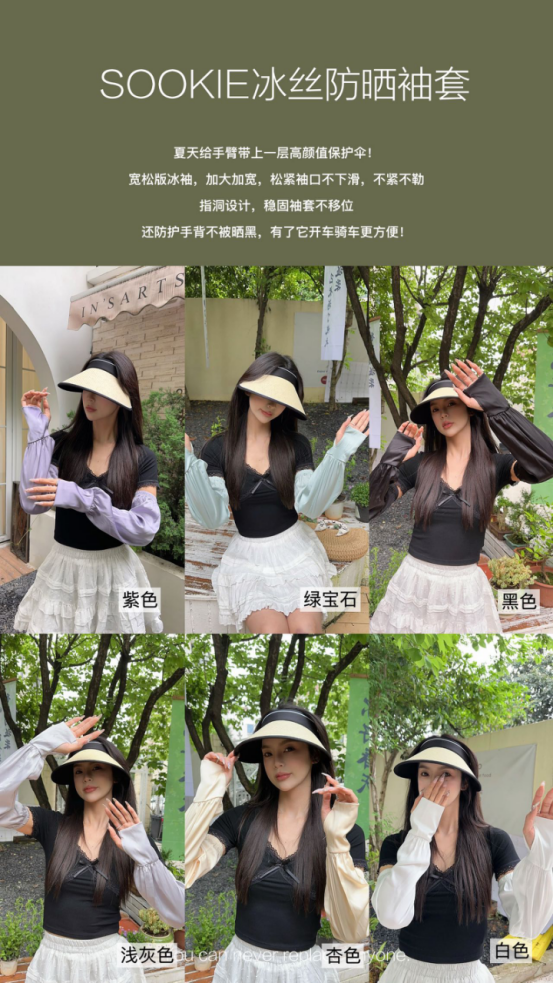 宽松版型设计 舒适久戴不勒 超高颜值高效防晒 舒适面料久戴不勒肉 冰袖在你手太阳底下任你走