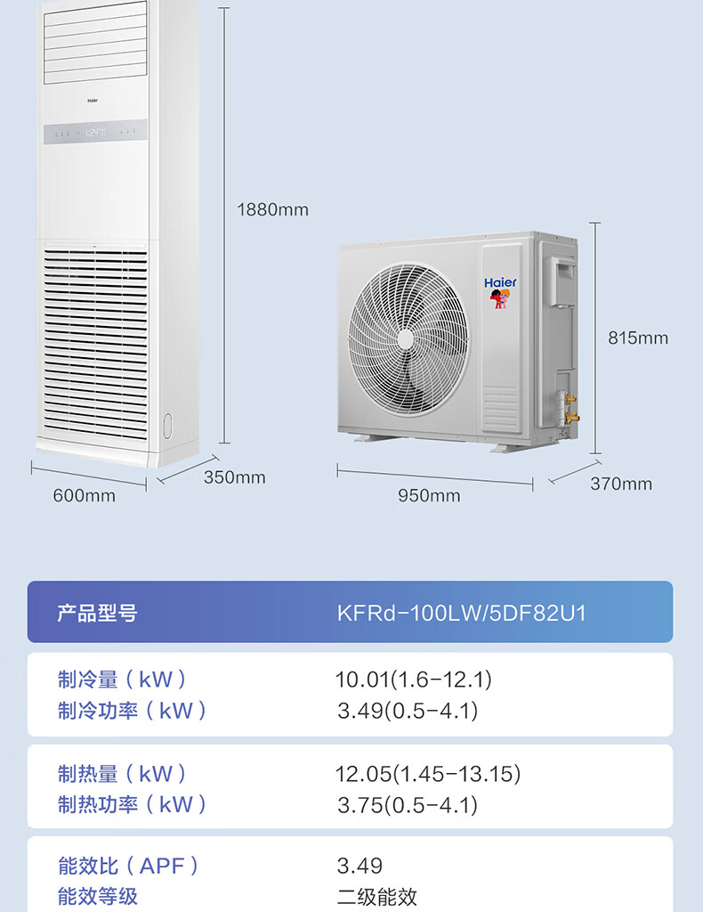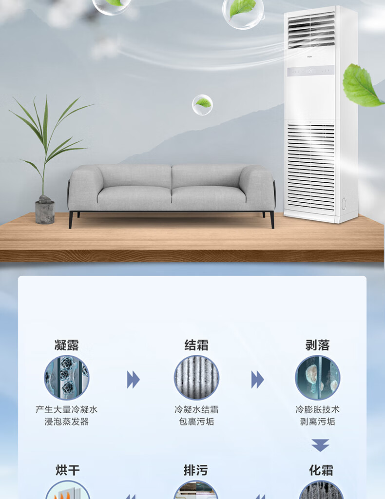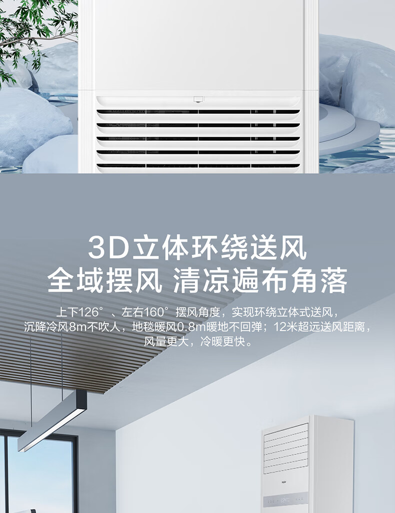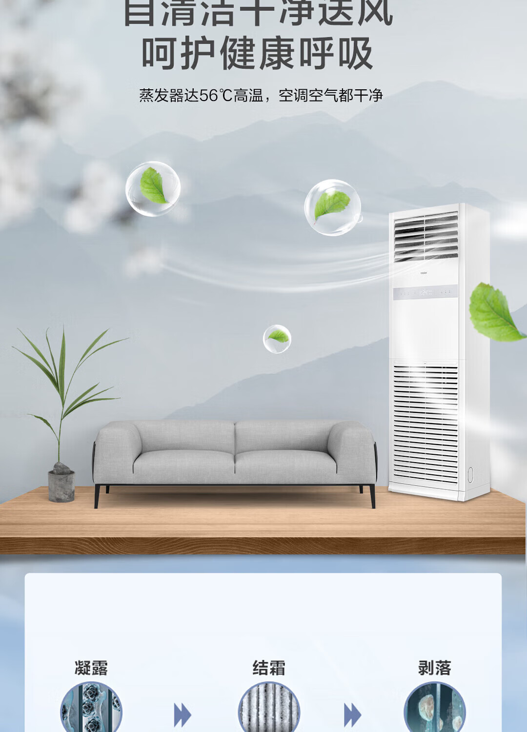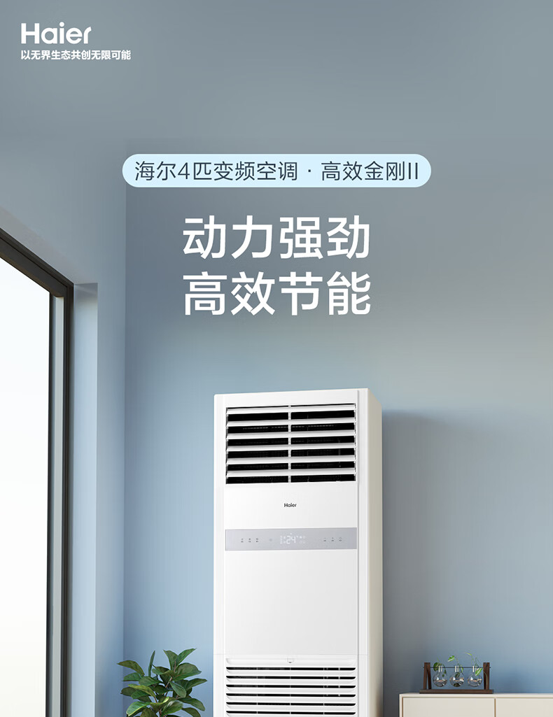 海尔4匹柜式空调中央空调4P柜机变频冷暖立式客厅空调220v家用KFRd-100LW/5DF82U1 4匹 二级能效 动力强劲+高效节能