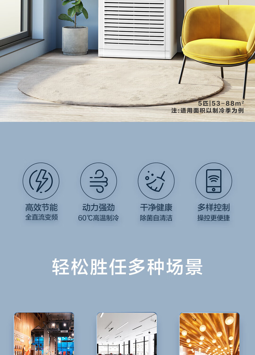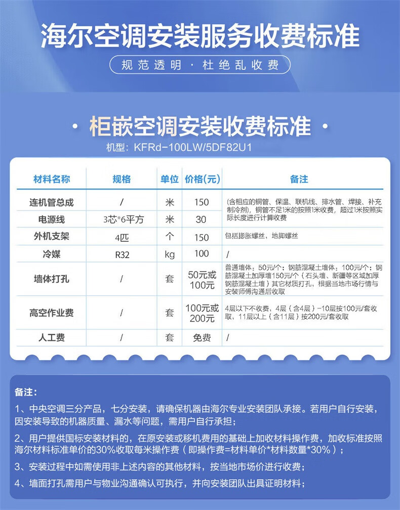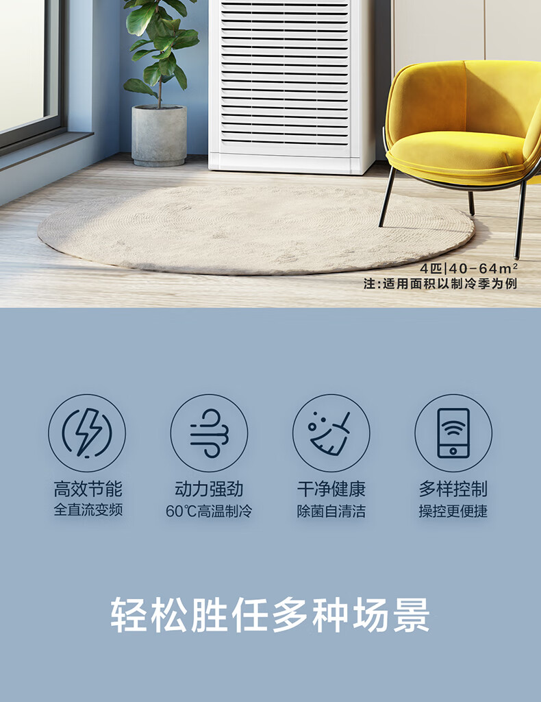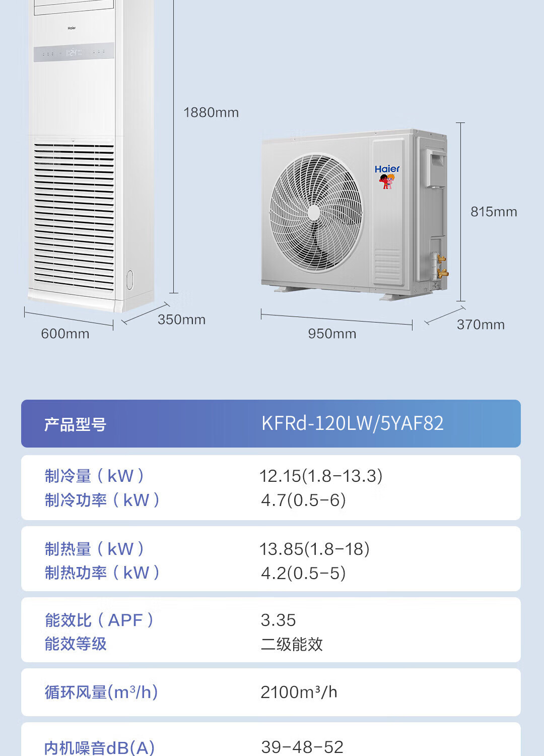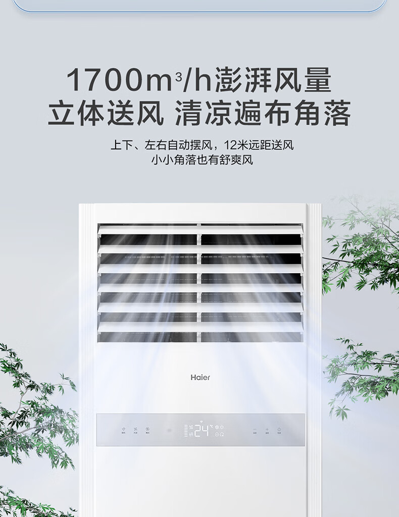 海尔4匹柜式空调中央空调4P柜机变频冷暖立式客厅空调220v家用KFRd-100LW/5DF82U1 4匹 二级能效 动力强劲+高效节能