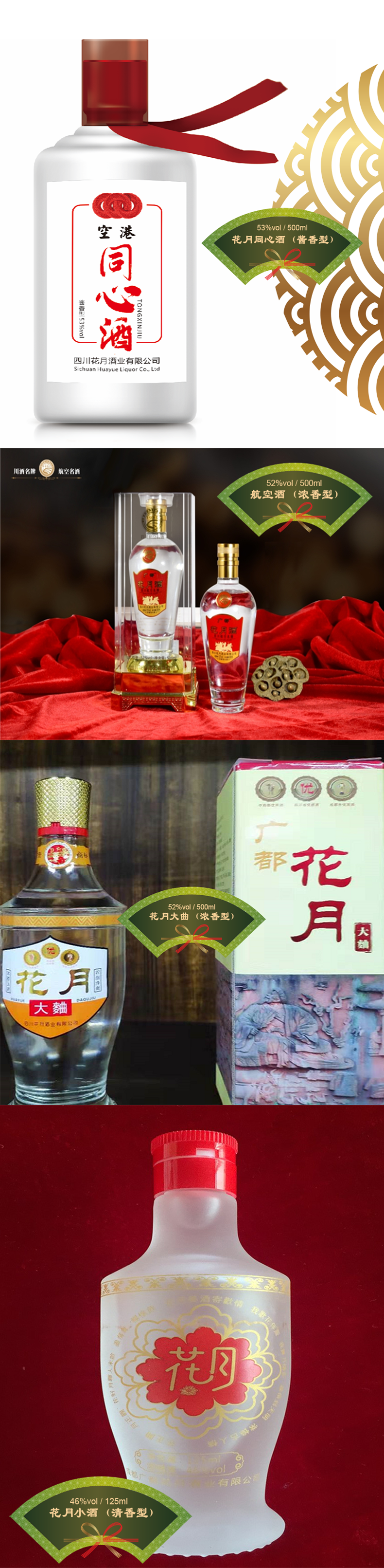 "花月"是川酒名牌,源自唐代名诗《春江花月夜》。千年窑、万年糟,高粱麦曲,单锅小灶,古法酿造,酒美如诗。有雾霭烟霞的画韵,江楼钟馨的清声。朦胧如诗的神秘,诗香酒名,百代流芳。也有华阳的古风,棠湖的繁盛,凭添一樽诗情,半盏文气。“花月”不仅是酒的冰清玉洁,回味悠长。更是陶潜的秋菊,苏轼的江月,李太白的人生梦,张若虚的孤篇诗。