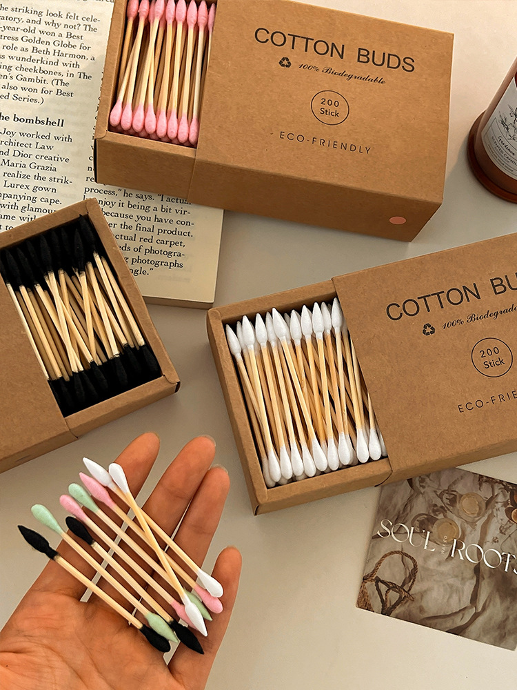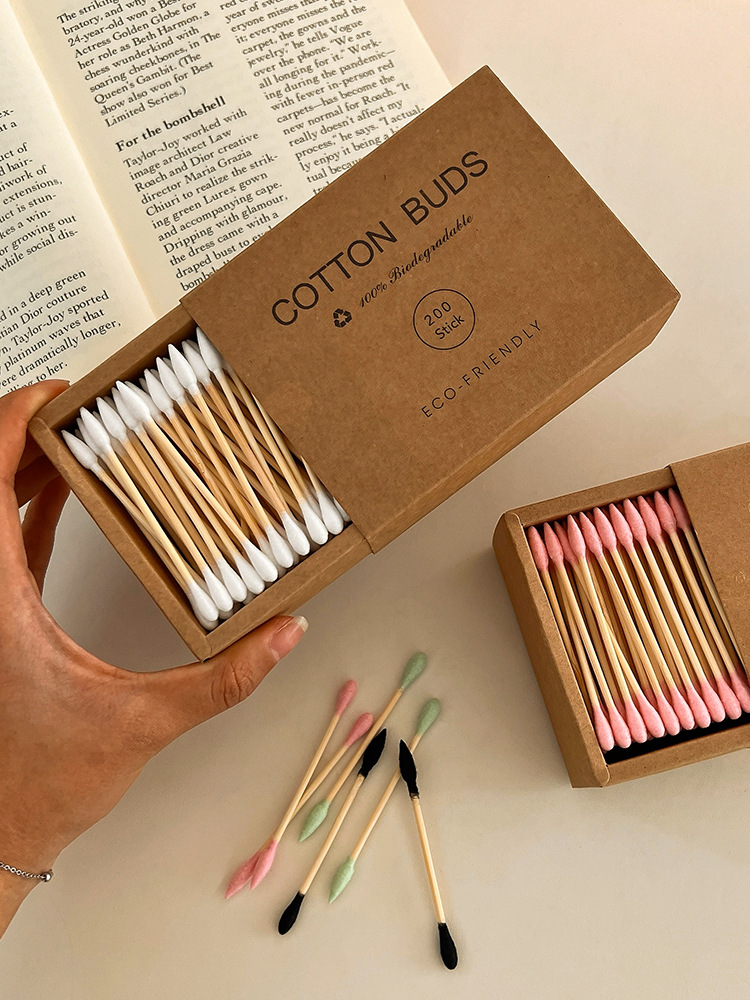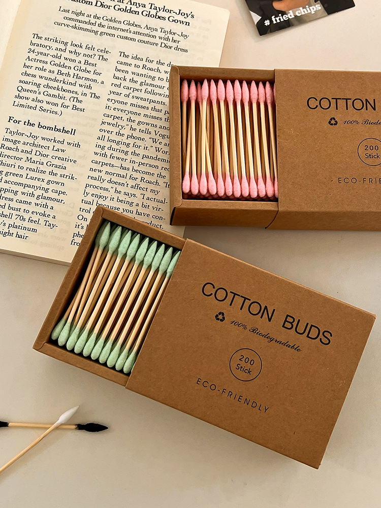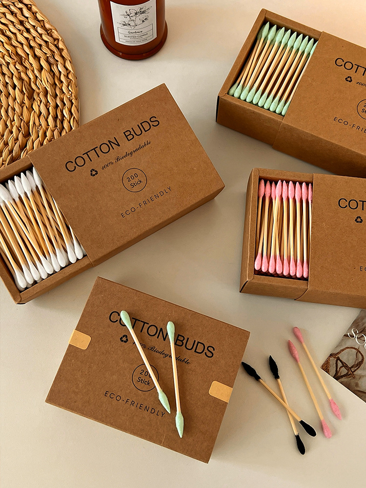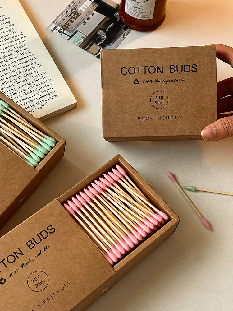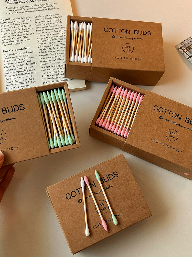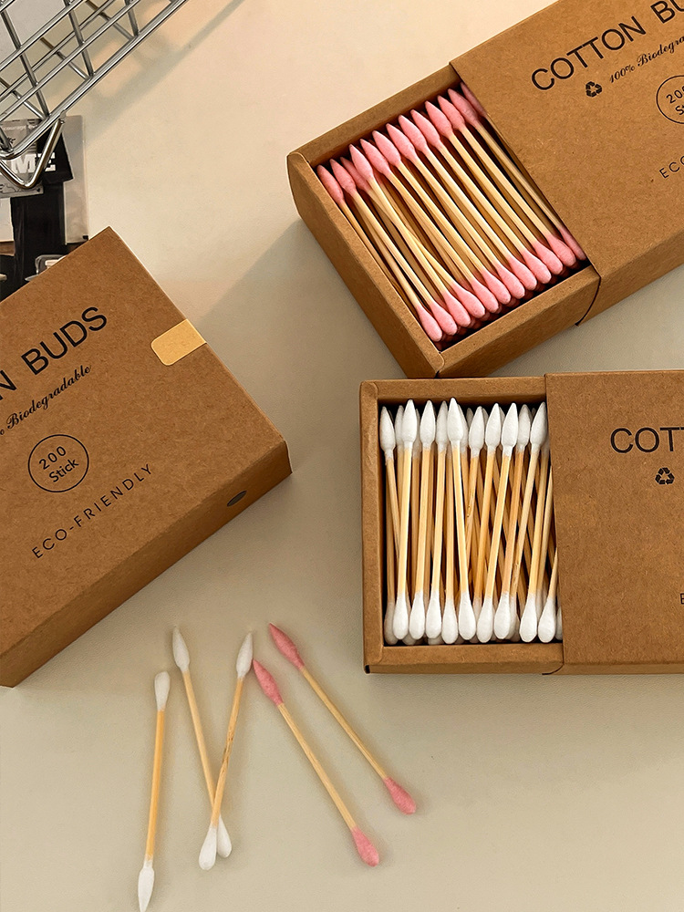 【双头多用!便捷卫生】200支装~牛皮纸盒化妆棉签环保竹木清洁卸妆掏耳朵专用双头棉花棒。xb