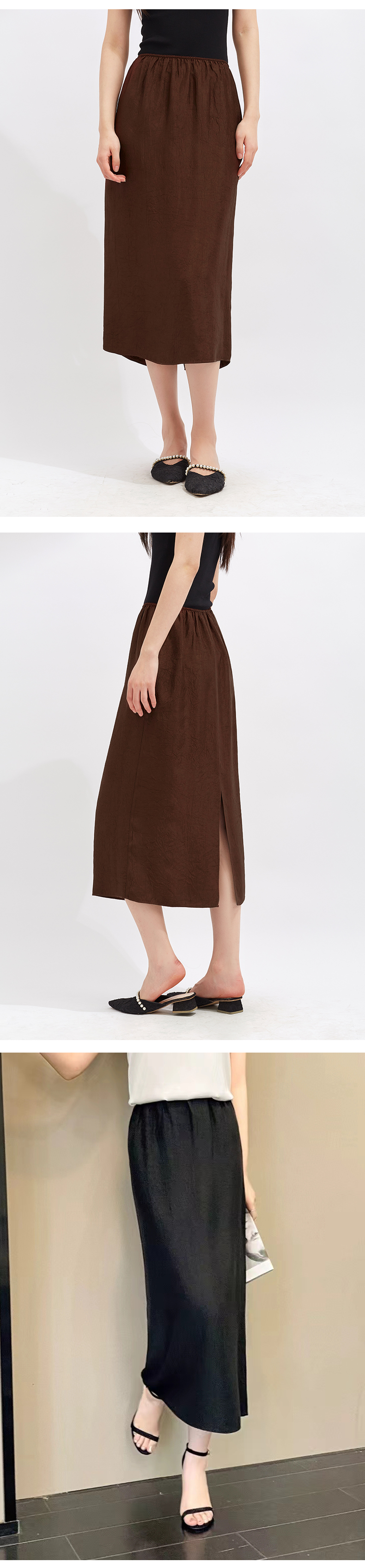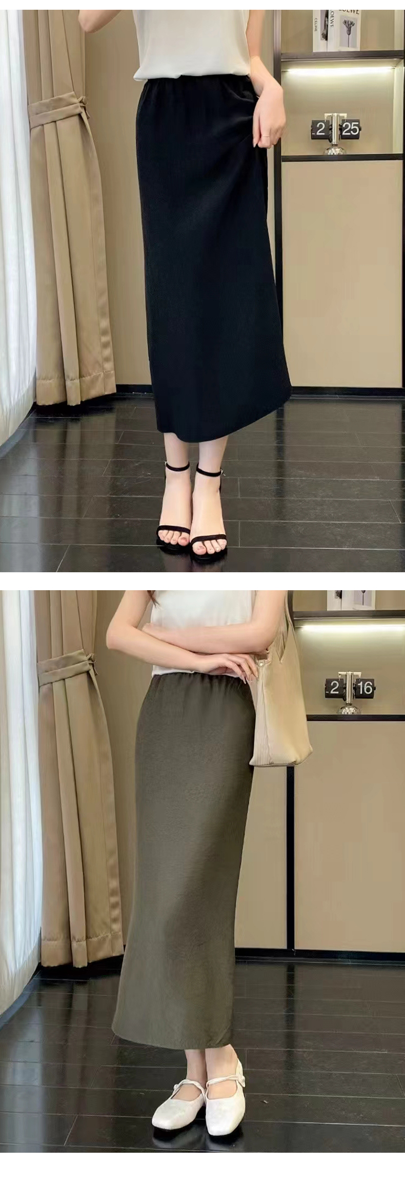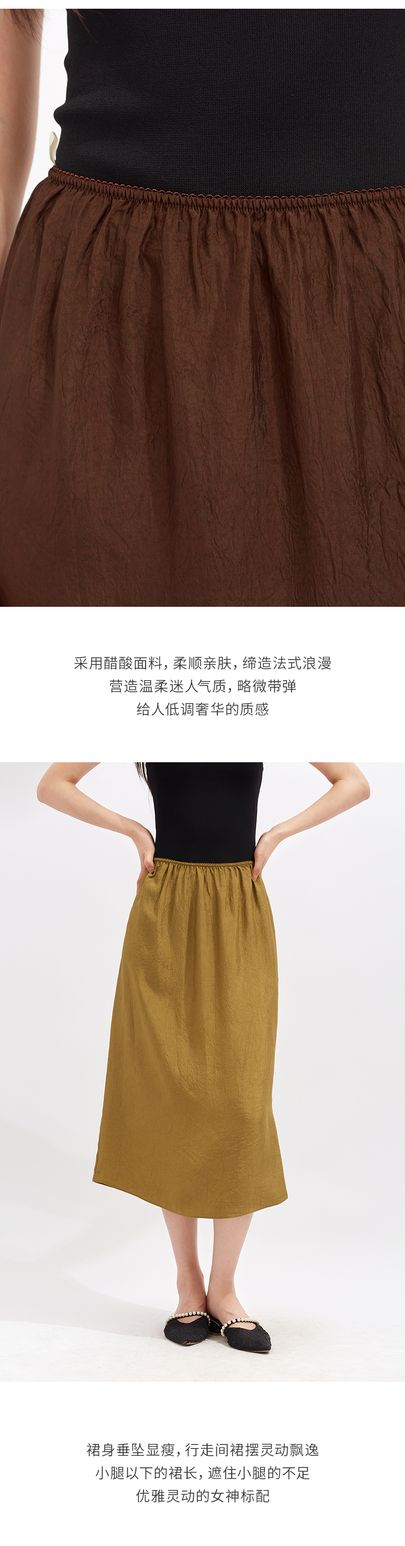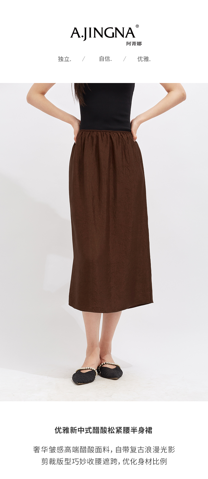 【温润素雅】阿菁娜优雅新中式醋酸松紧腰半身裙F30X213008