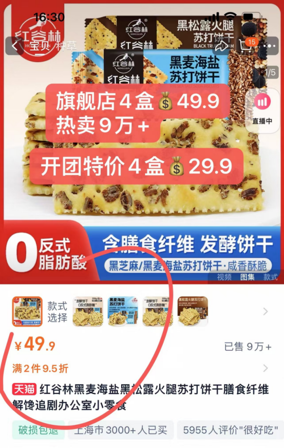 💖【红谷林苏打饼】紧急调价随时停⚠️29.9🉐4大盒❗黑麦海盐&黑松露火腿两个口味,巨好吃❗热销10W+单🔥李+7、与辉同行直播间爆卖❗