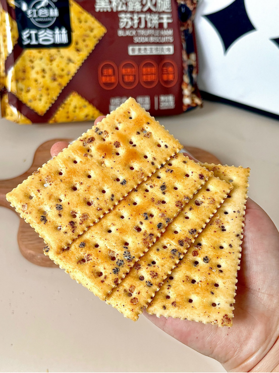 【黑松露火腿苏打饼干】 蓬松酥脆,鲜香浓郁,饱腹感强! ✅高级食材:黑松露和火腿,香昏了头 ✅添加三色藜麦