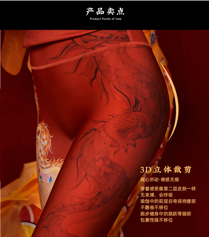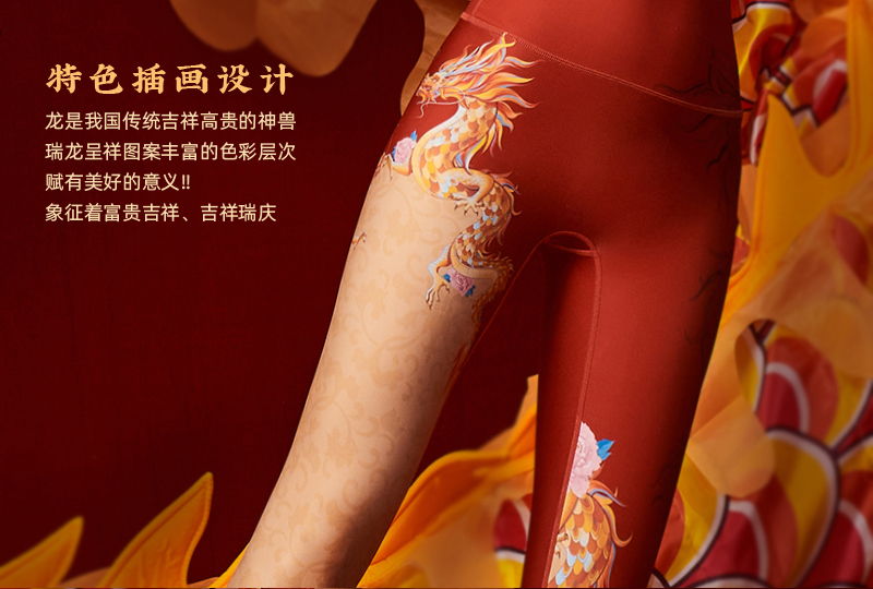 壁虎瑜伽【瑞龙呈祥-裤子】限量款印花瑜伽12分裤【可定制】(标准码)【2024年1月8日发货】