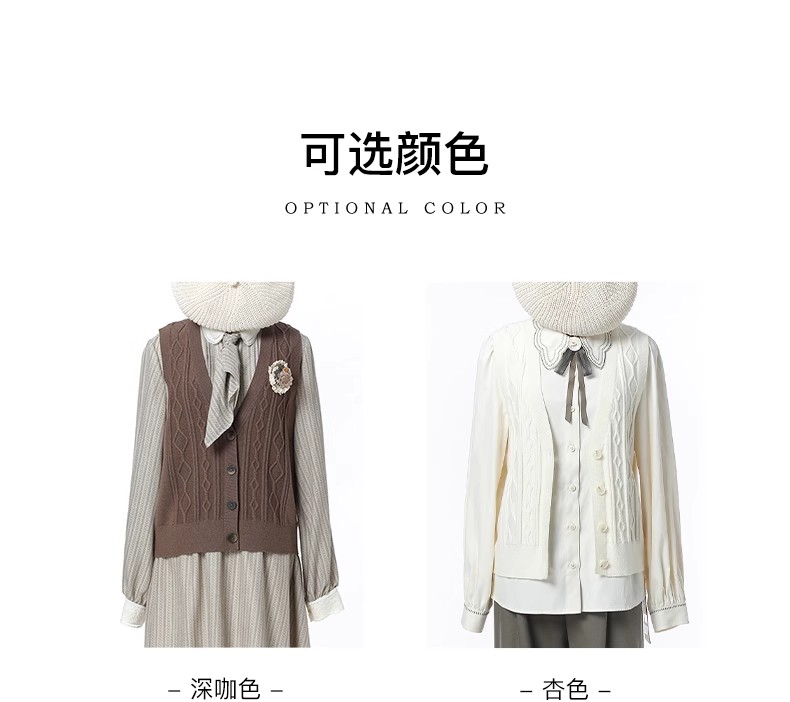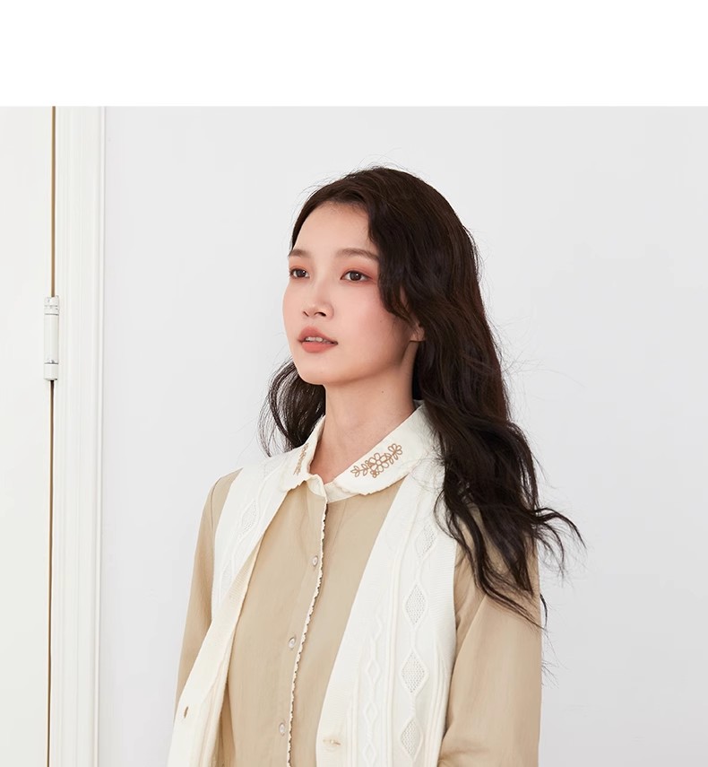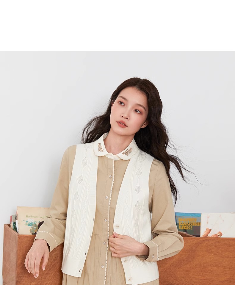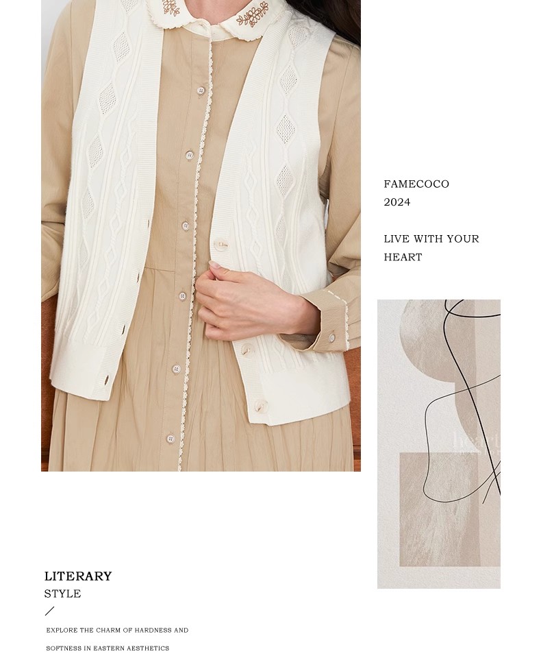 Famecoco范可儿文艺复古马夹百搭V领刺绣叠穿马甲坎肩FAB6CA006