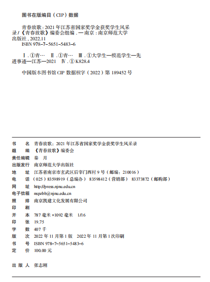 青春放歌 :2021年江苏省国家奖学金获奖学生风采录 南京师范大学出版社 正版书籍