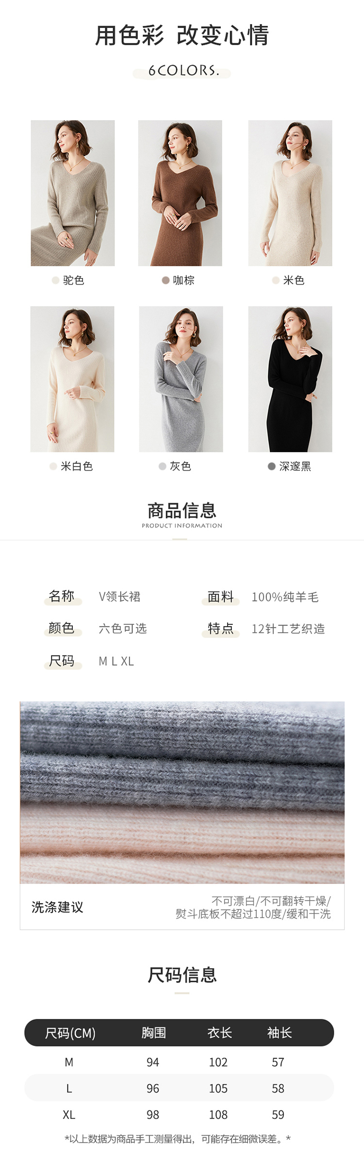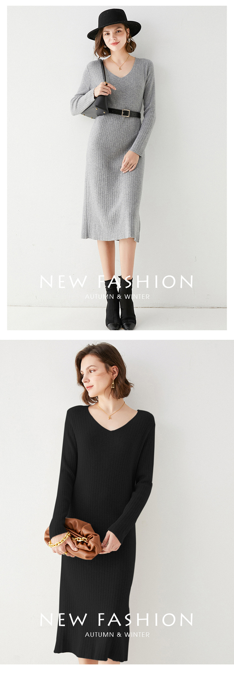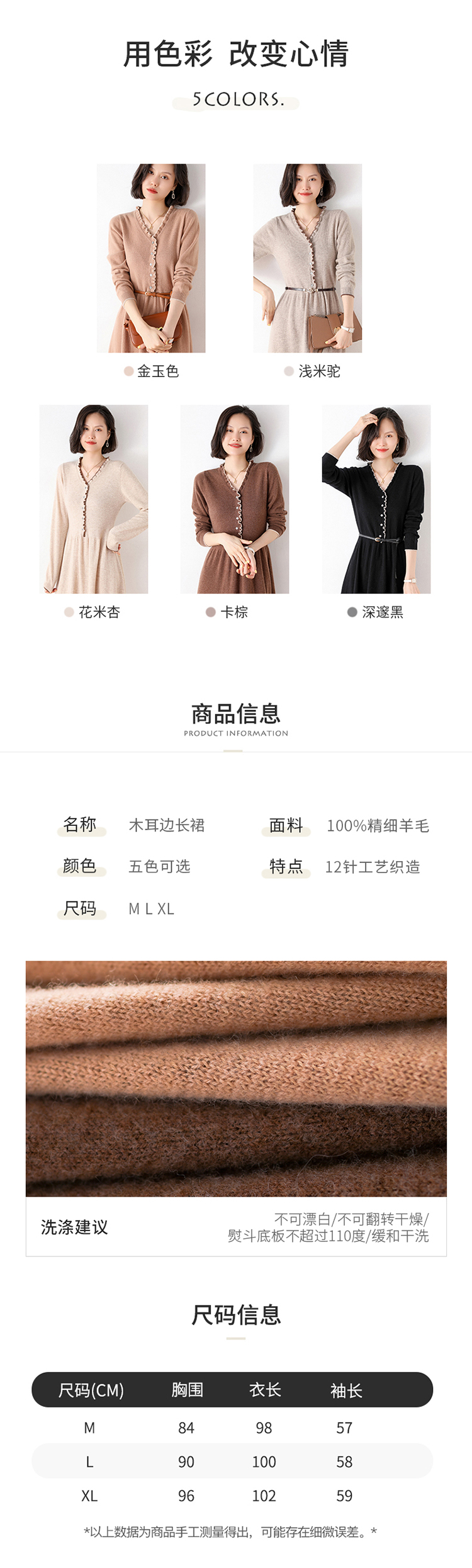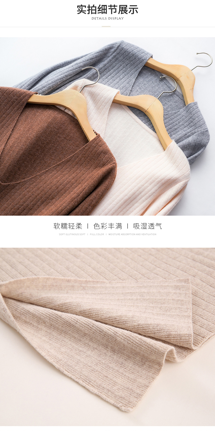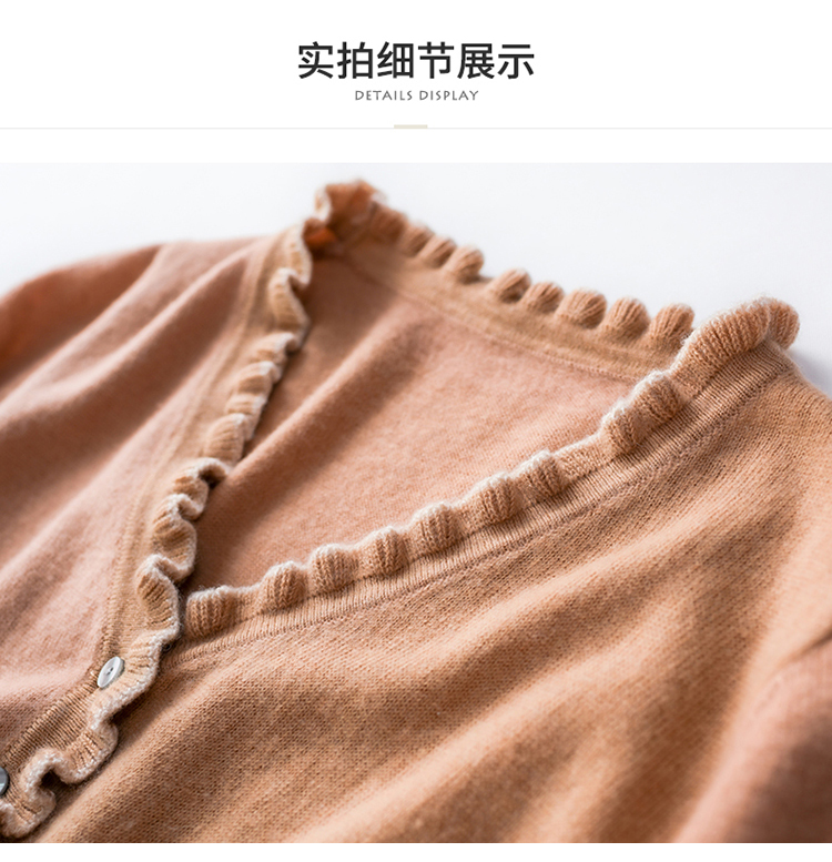 Avann纯羊毛V领-木耳边长裙羊毛女 新款洋气针织裙